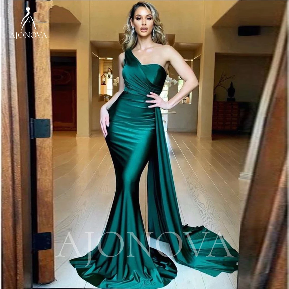 Женское атласное платье-Русалка, элегантное зеленое платье на одно ...