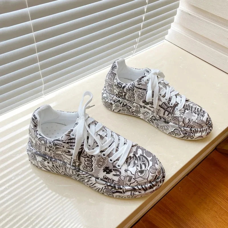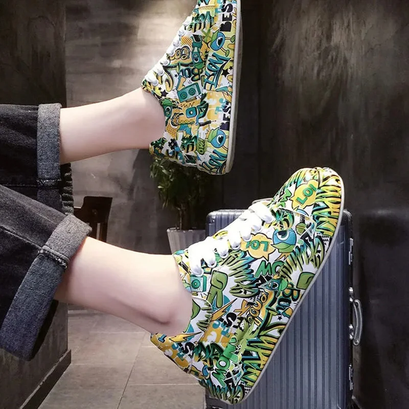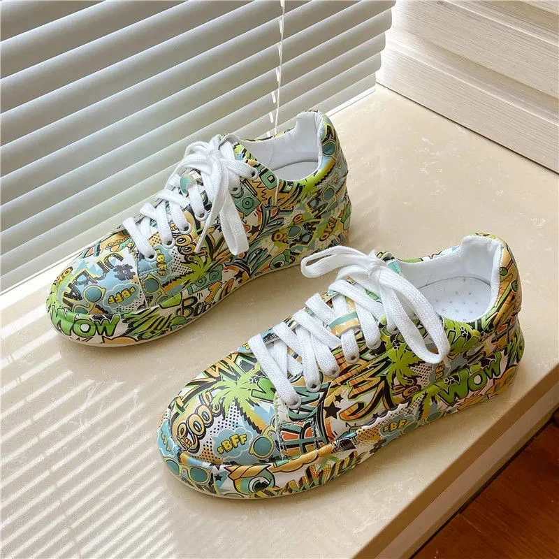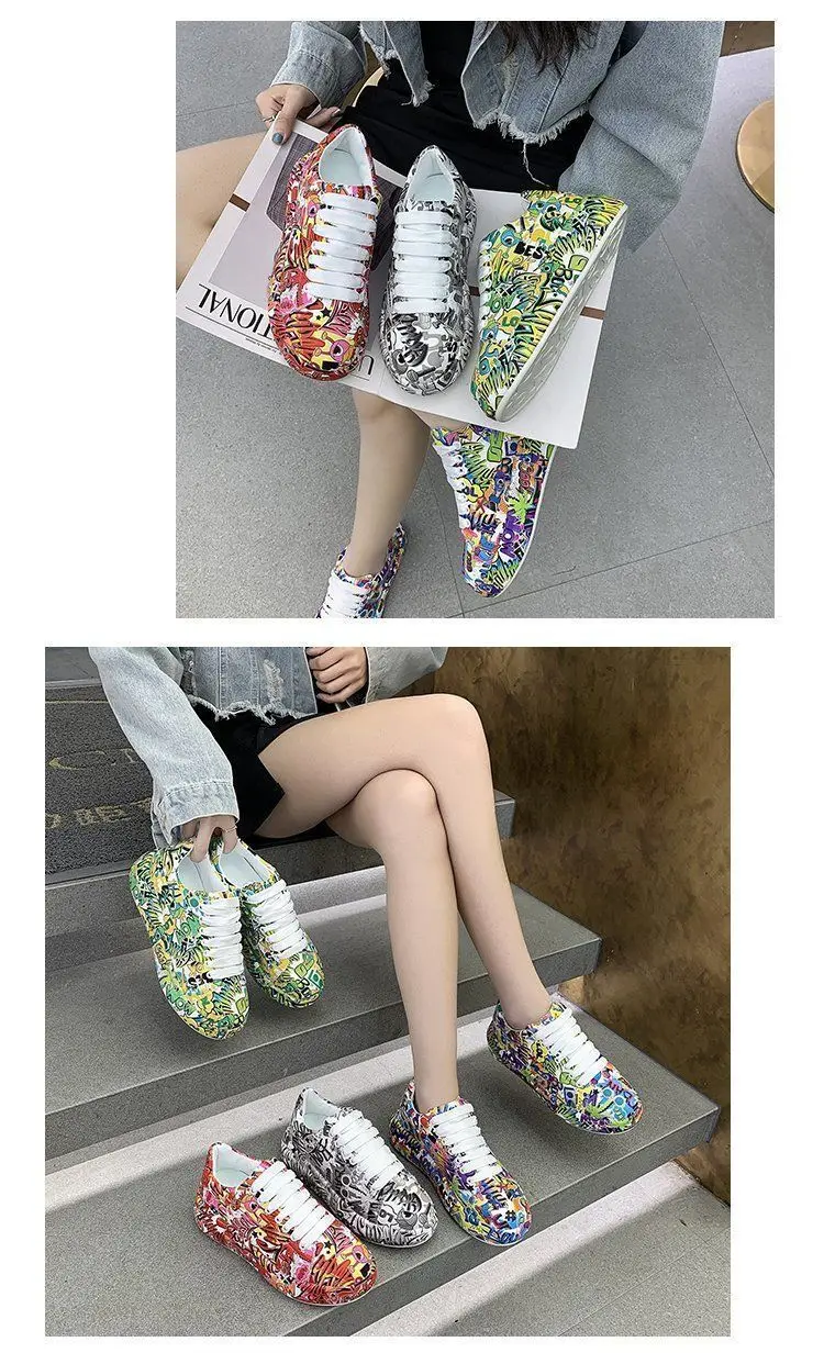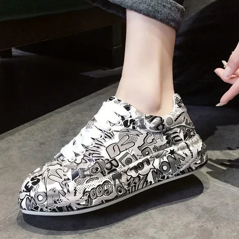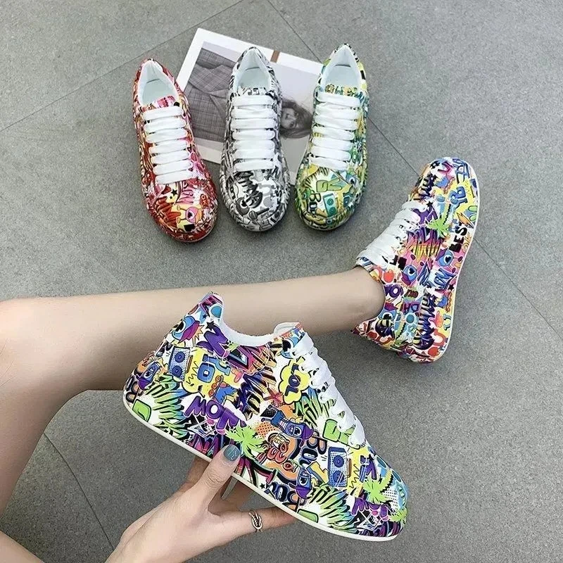 Женские кроссовки с граффити на вулканизированной подошве, модная женская трендовая обувь для отдыха, кроссовки на плоской подошве для девочек, обувь для бега, 2022