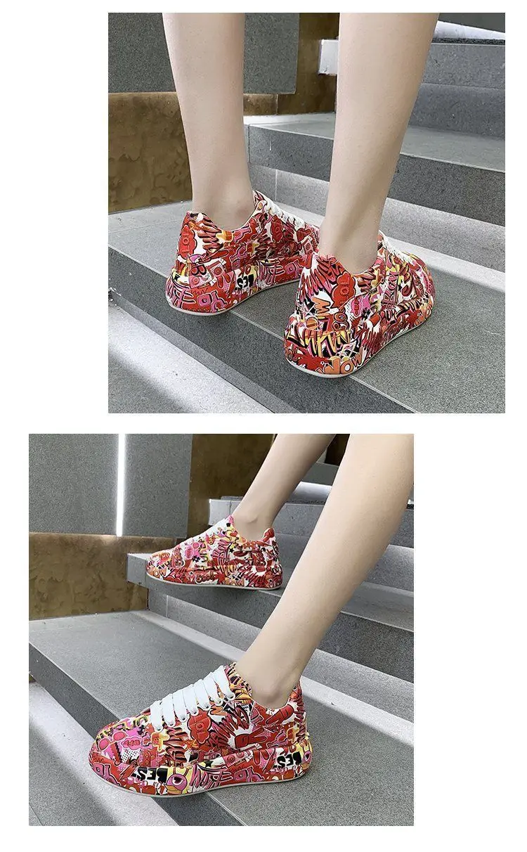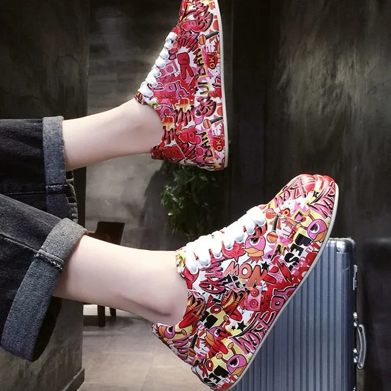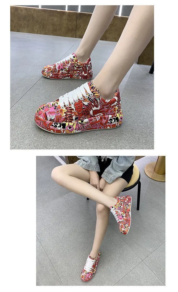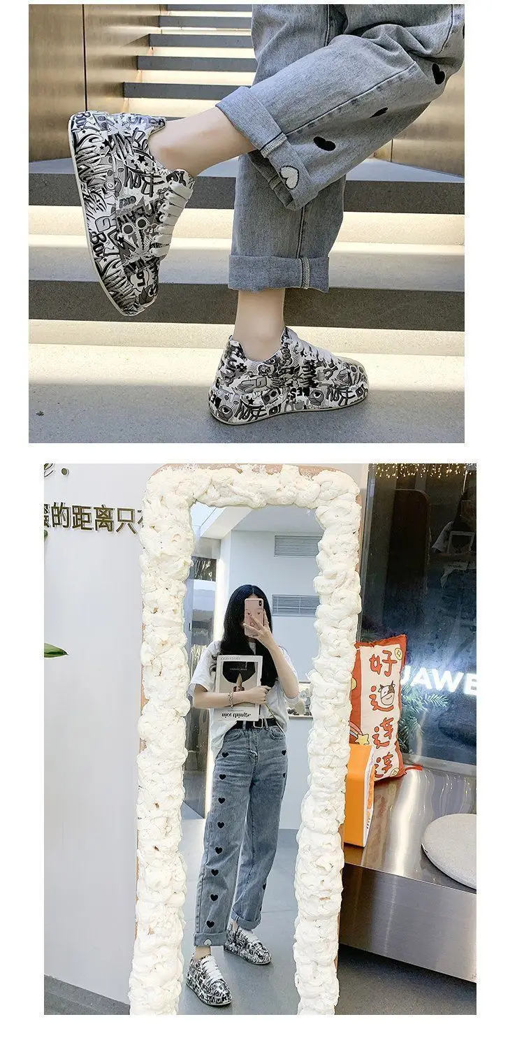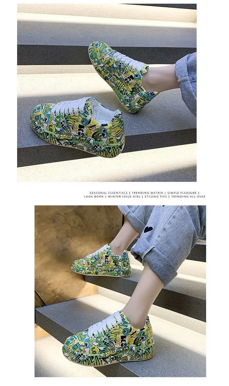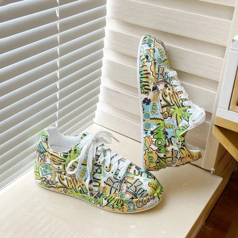 Женские кроссовки с граффити на вулканизированной подошве, модная женская трендовая обувь для отдыха, кроссовки на плоской подошве для девочек, обувь для бега, 2022