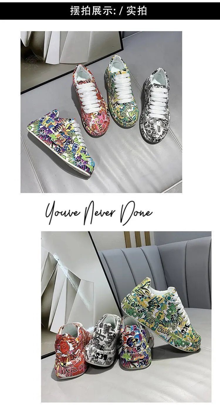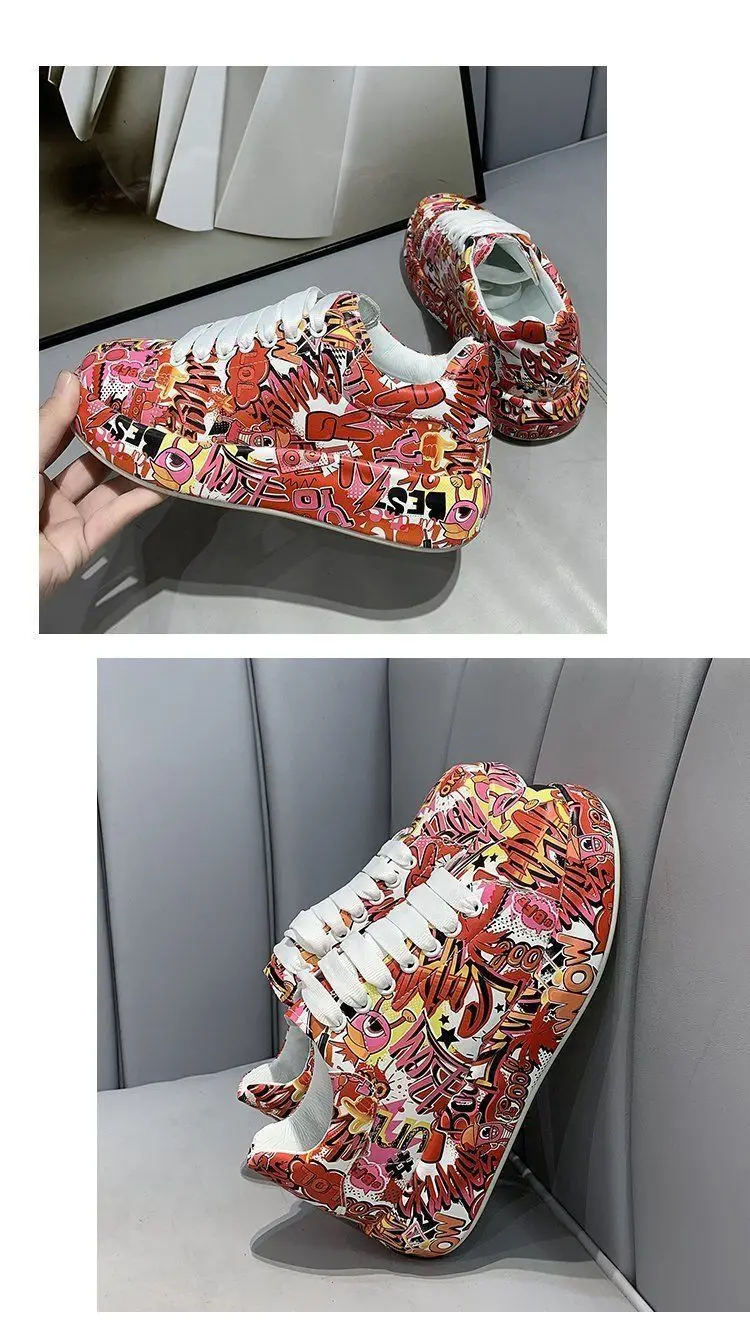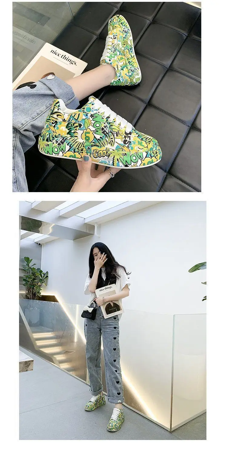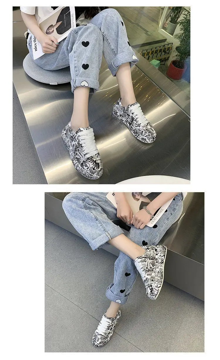 Женские кроссовки с граффити на вулканизированной подошве, модная женская трендовая обувь для отдыха, кроссовки на плоской подошве для девочек, обувь для бега, 2022