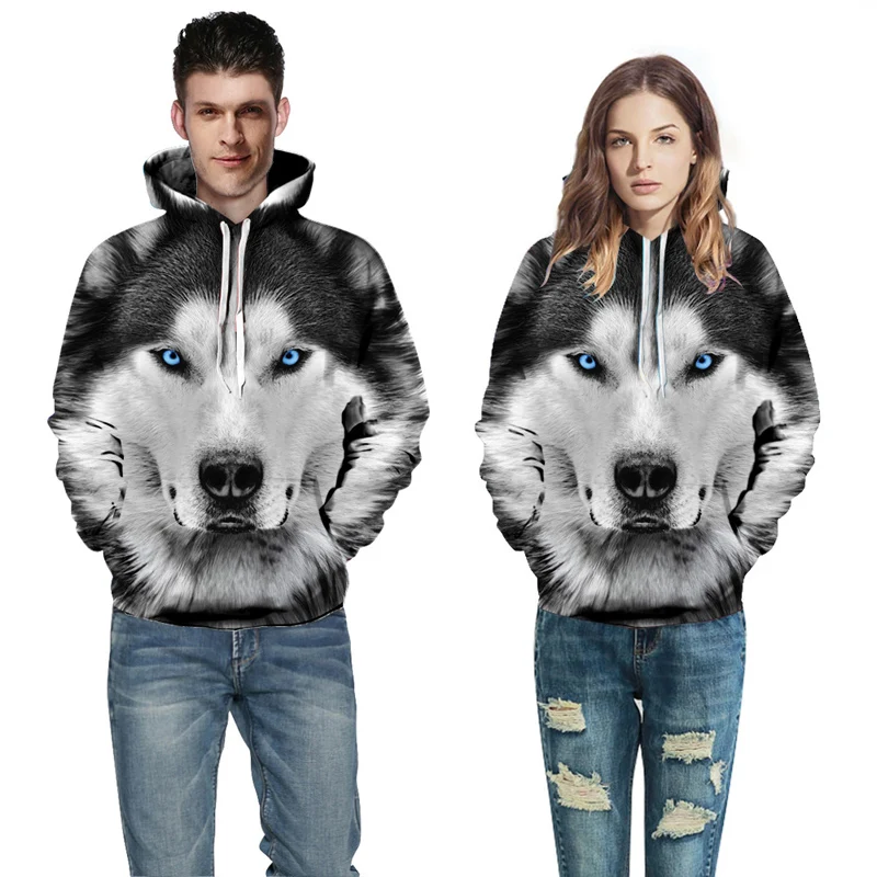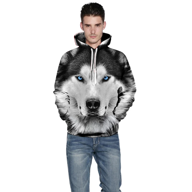 Новое поступление, модные мужские толстовки с 3D рисунком волка, свободный крой, Осенний свитшот для мужчин, уличная одежда, толстовка, забавное худи, брендовая детская одежда
