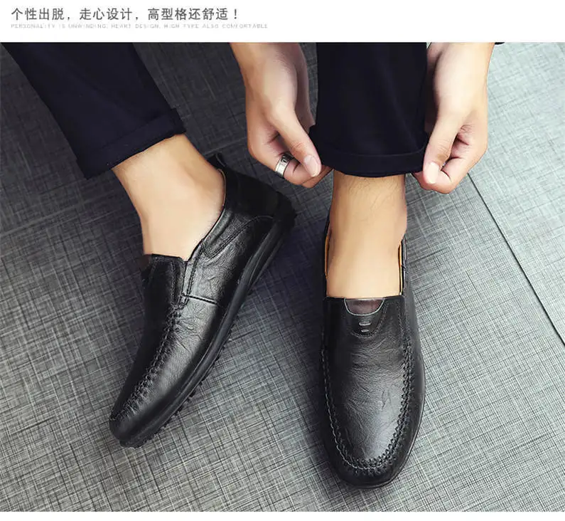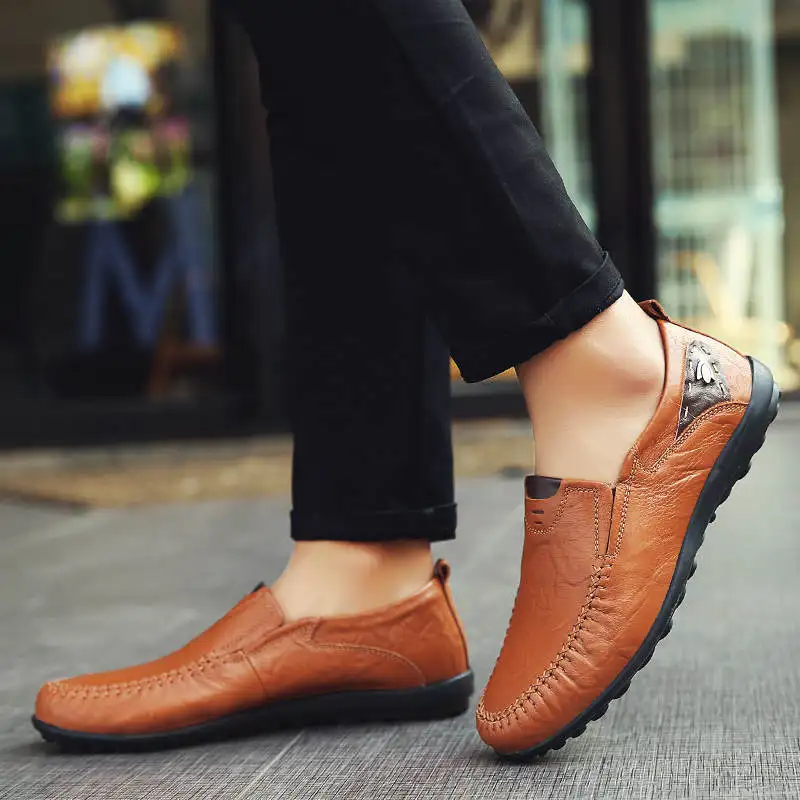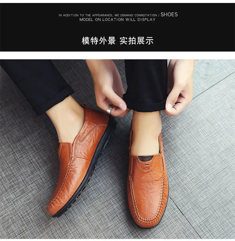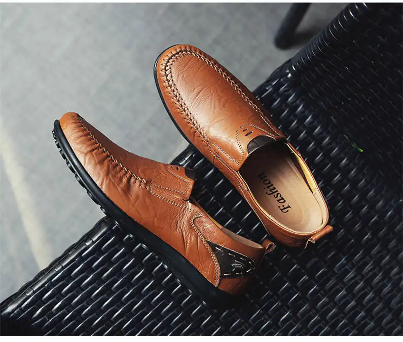 Мужские повседневные кожаные туфли, коричневые мокасины из натураль...