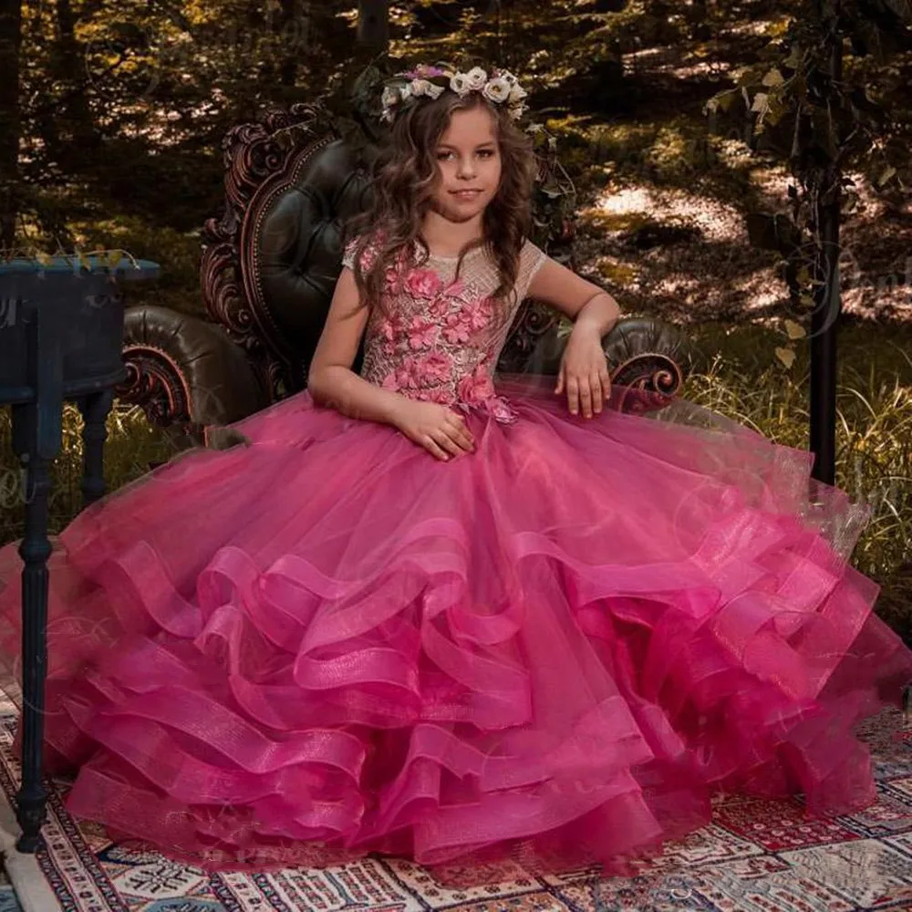 Женское платье с розовыми цветами, свадебное платье с 3D цветочной аппликацией для малышей, нарядное платье в стиле бохо, Пляжное Причастие маленького ребенка