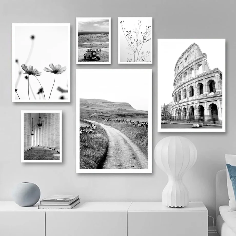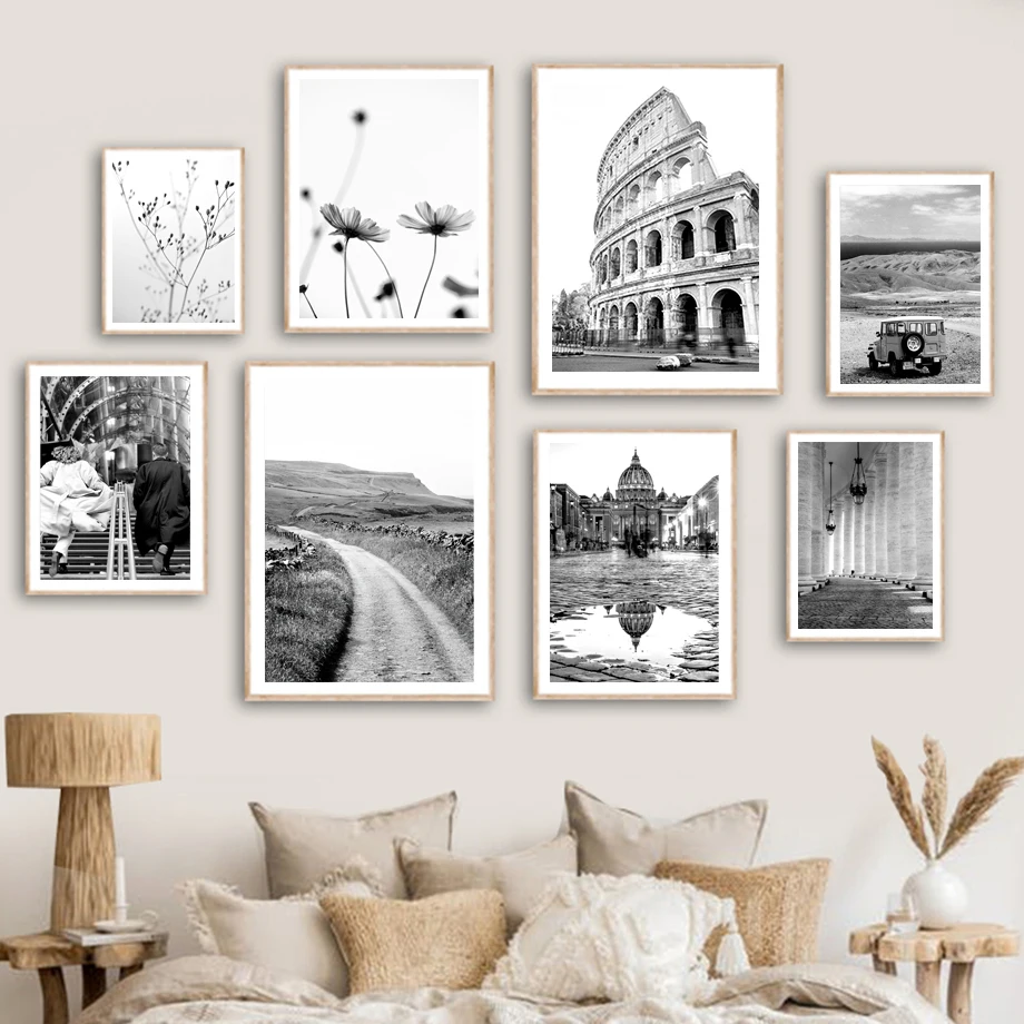 Рисунок на холсте в римском, марокканском, городском, автомобиле, марихуане, черно-белой раскраски, скандинавские постеры и принты, настенные картины, декор для гостиной