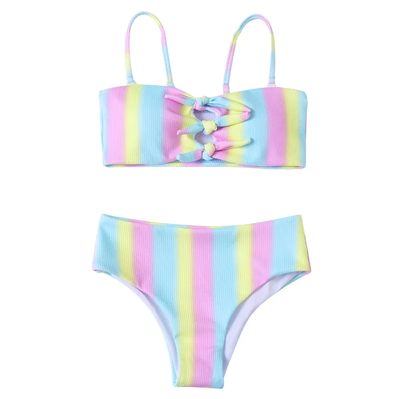 Купальник для девочек с радужным принтом, новинка, летний детский бандажный купальник, бикини 2022, детский бандажный купальник, пляжная одежда