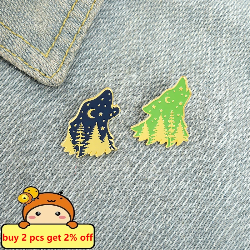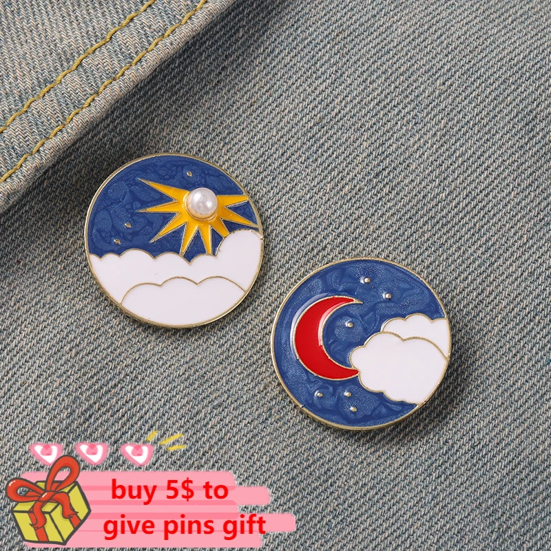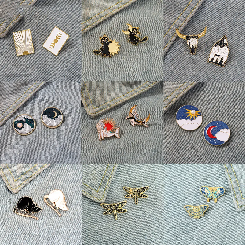 Эмалированная заколка 2 шт.компл. Солнце Луна на заказ День Ночь Кот Кита волк крыса Броши с лисой сумка Одежда Металлический значок ювелирные изделия Прямая поставка