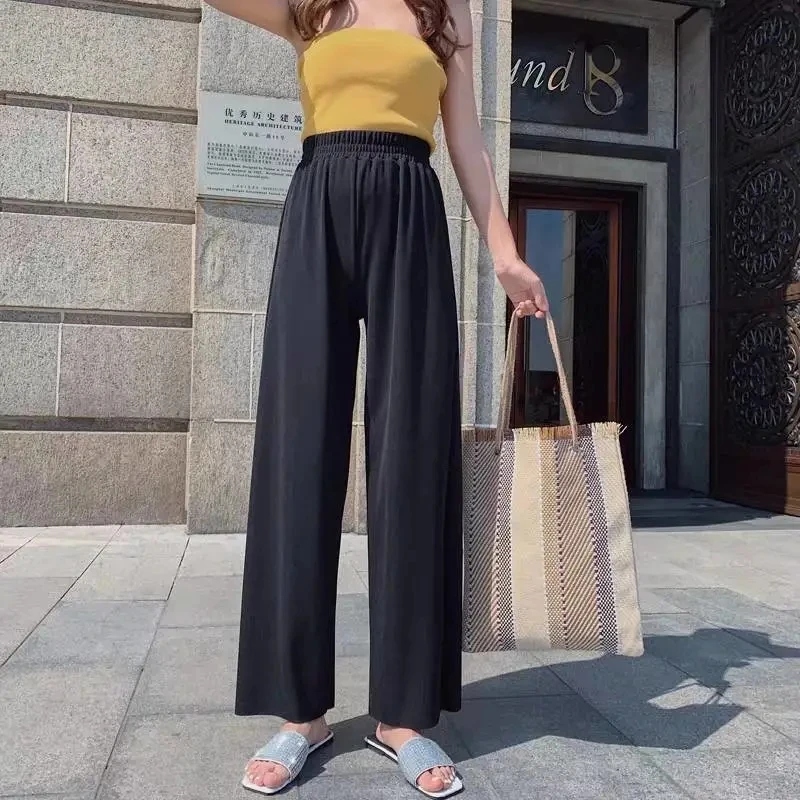Женские брюки из ледяного шелка, женские летние свободные прямые брюки