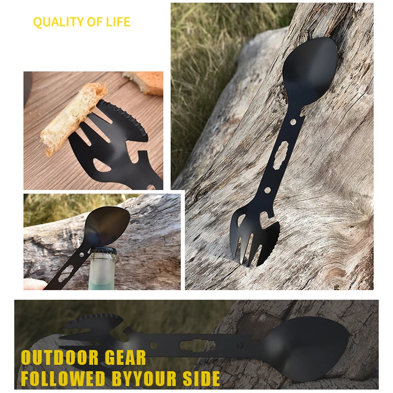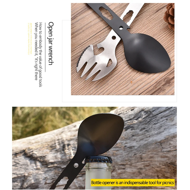 Уличная многофункциональная ложка из нержавеющей стали, портативная посуда для кемпинга, посуда, открывалка для бутылок, гаечный ключ