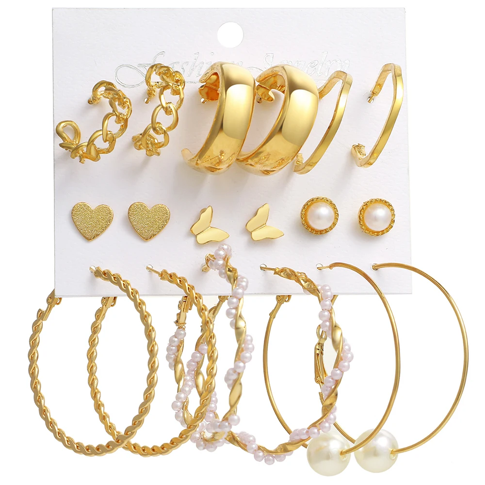 EN модные серьги с большой жемчужиной Комплект сережек для женщин, ...