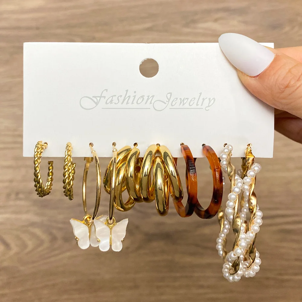 Богемные женские жемчужные акриловые висячие серьги, ювелирный набор, новый тренд, подвеска в виде змеиной бабочки