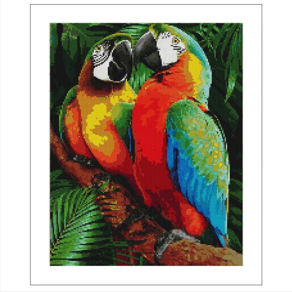 Холст Размер полностью Квадратный бриллиант, 5D картина пара попуга...