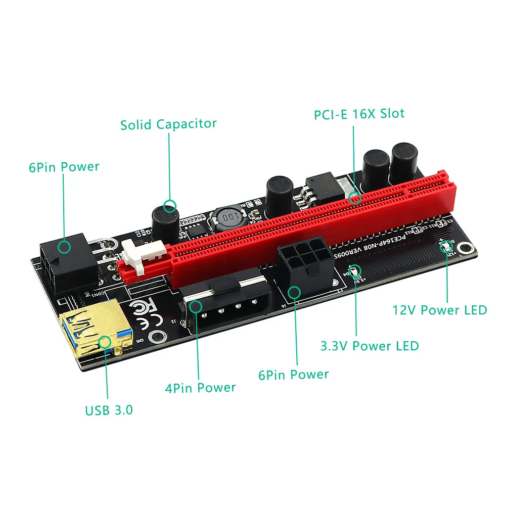 009S-Plus USB PCI-E Riser Card PCI Express 1X к 16X Удлинительный адаптер 6P к SATA кабель питания для майнинга Биткоин Шахтер видеокартаХарактеристика:1. Этот расширитель PCI-E GPU поддерживает позолоченные контакты, которые имеют хорошую производительность и используется для длительного времени.2. На этой плате PCI-E 1X-16X есть 4 конденсатора, чтобы сделать источник питания стабильным и безопасным.3. Сопротивление адаптера PCI-E GPU стабильное, и есть 3 светодиодный индикатор, чтобы показать рабочий статус.4. Карта адаптера расширения GPU имеет 6pin интерфейс, который может быть легко подключен, и 6pin интерфейс также может уменьшить нагрузку на материнскую плату.5. Плата адаптера PCI-E имеет фиксированную пряжку, которая может зафиксировать графическую карту, и ее нелегко уронить. Спецификация:Цвет слота: красный, серыйРазмер изделия: 122x44x2 2 мм/4.8x1.73x0.87inВес изделия: 42 гРазмер упаковки: 180x160x3 0 мм/7.09x6.3x1.18inВес посылка: 110 г (Зеленый PCIE от 1 до 4) Новый PCIE от 1 до 4 удлинитель PCI-E к PCI-E адаптеру 1 поворот 4 PCI-Express слота 1x к 4x 16x USB 3,0 переходника мультипликатор карты конвертерОсобенности:4 слота обеспечивают большую расширяемость.Подключается непосредственно к плате без какого-либо удлинителя кабеля, можно закрепить на чехол.Разъем PCI-E, дополнительный кабель питания не требуется.Только один кабель к слоту, легко и удобно оседать и устанавливать.С IC тепловым радиатором. Спецификация:Тип шины: PCI-E X4 может быть совместим с PCI-E X8 X16 и другими интерфейсами одновременноРасширительный интерфейс: PCI-E-USB интерфейс X 4Условия установки: на материнской плате должно быть одно или несколько свободных слотов PCI-EРабочая температура: -10 ℃-60 ℃Температура хранения: -20 ℃-40 ℃Продукт Размеры: 8X6,2X12 см/3,15X2,44X4,72 "(Д X Ш X В) (перегородка) (Gold PCIE 1-4) адаптер PCI-E карта PCI-E X1/X4/X8/X16 1-4 USB мультипликатор концентратор переходная карта расширитель PCIe конвертер для Bitcoin ETH Mining MinerХарактеристика:1. Usb-устройства не поддерживаются, а также поддерживаются видеокарты серии 10.2. Интерфейс PCI-E X1 может быть легко расширен до тех пор, пока материнская плата имеет разъем PCI Express X1/X4/X8/X16, подключи и работай, удобно и быстро.3. Использование технологии золотого погружения, хорошая проводимость, анти-окисление, обеспечение хорошего контакта и улучшение скорости передачи данных.4. Использование высококачественной печатной платы, высокая термостойкость, холодное сопротивление, долгосрочное использование без деформации, чтобы обеспечить долгосрочную стабильность. Спецификация:Название продукта: PCI-E X1 от 1 до 4Применимые слоты: PCIE X1/X4/X8/X16Размер продукта: 120*66*20 мм/4,7*2,6 * 0.8inРабочая среда: 0 °C-70 °CПрименимая система: для Windows XP / Win7 / Win8 / Win8.1 / Win10 и т. Д. (Синий PCIE от 1 до 4)EUX1-04 PCIE от 1 до 4 Riser Card Внешний 4 PCI-E слот адаптер USB 3,0 PCIe конвертер для BTC Miner MiningХарактеристика:1. Эффективно решить проблему отсутствия интерфейса pci-e на материнской плате, и один интерфейс может быть расширен до 42. Используя вставной дизайн, он может быть непосредственно подключен к интерфейсу материнской платы без удлинительного шнура, и его можно зафиксировать на шасси, что значительно повышает стабильность и надежность!3. Основная плата управления принимает режим прямого питания интерфейса pci-e, внешний шнур питания не требуется, и питание основной платы управления не мешает внешнему миру, И стабильность выше!4. Уменьшить количество адаптеров и адаптеров. Один провод напрямую подкл