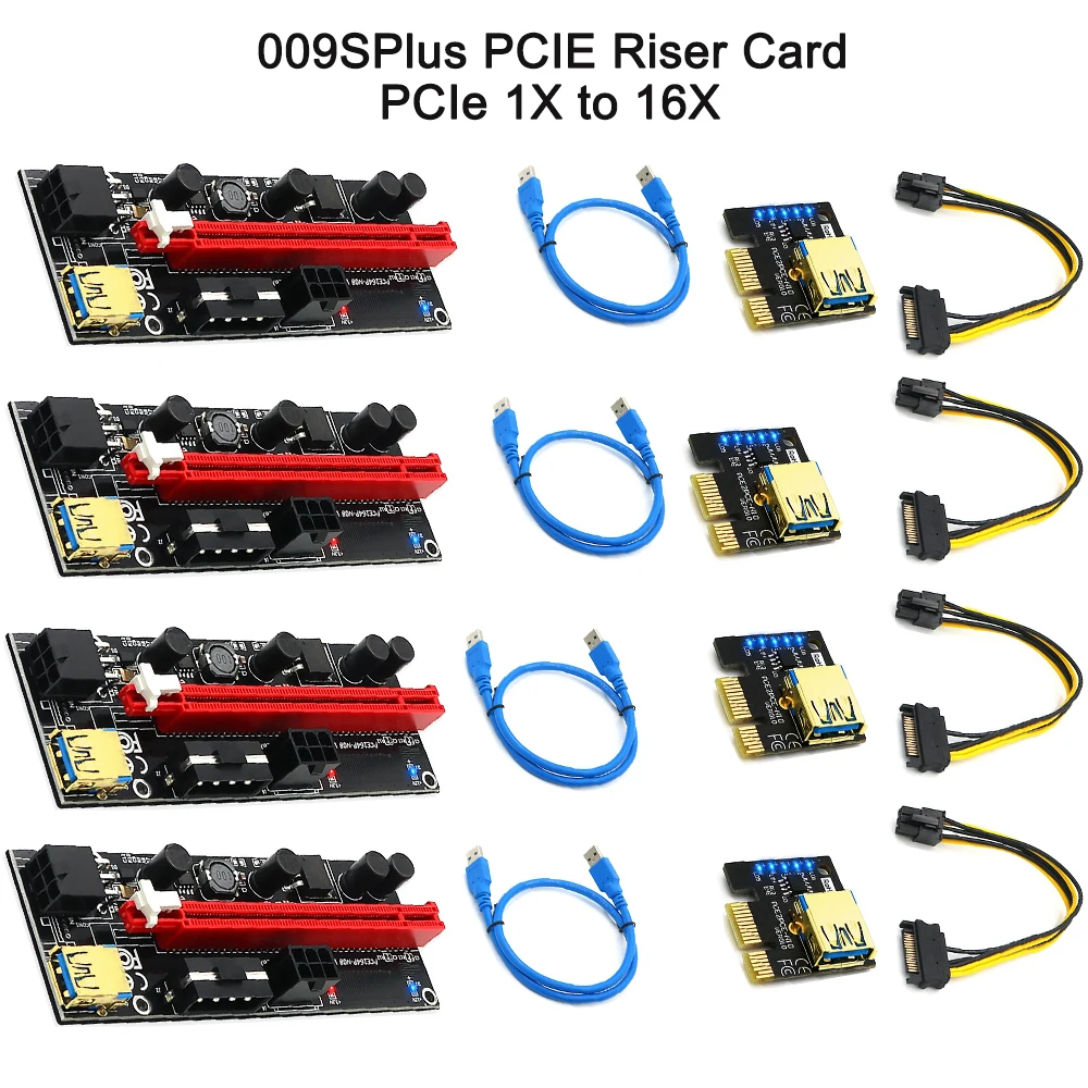 Райзер 009S Plus PCI E адаптер Райзера PCIE от 1 до 4 USB PCI Expre...