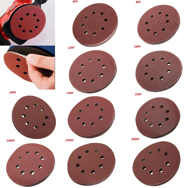 10 шт. 125 мм 5 "Крюк Петля Шлифовальные диски 8 отверстий наждачная бумага колодки Набор 40Grit-3000Grit шлифовальный диск абразивные полировальные инструменты