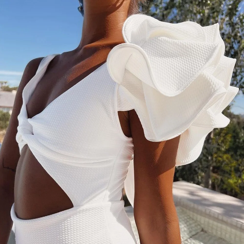 Новинка 2022, пикантный однотонный белый слитный купальник на одно плечо с рюшами, женский купальник, купальный костюм с открытой спиной, пляжная одежда, монокини
