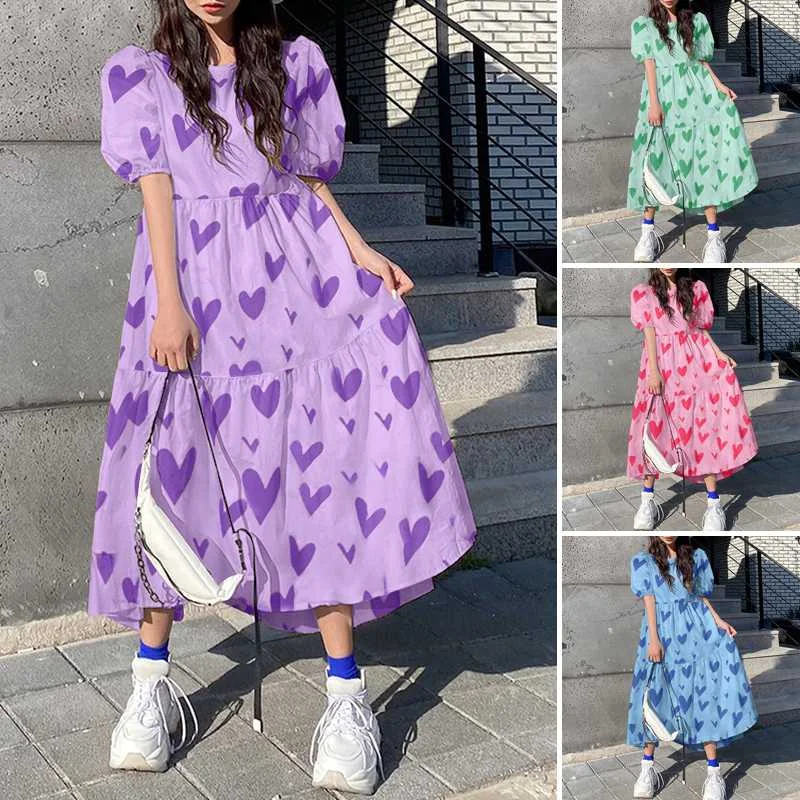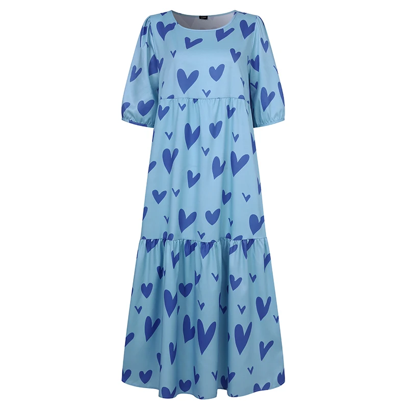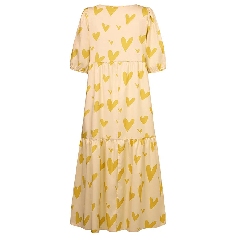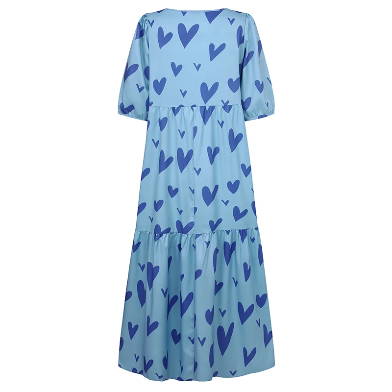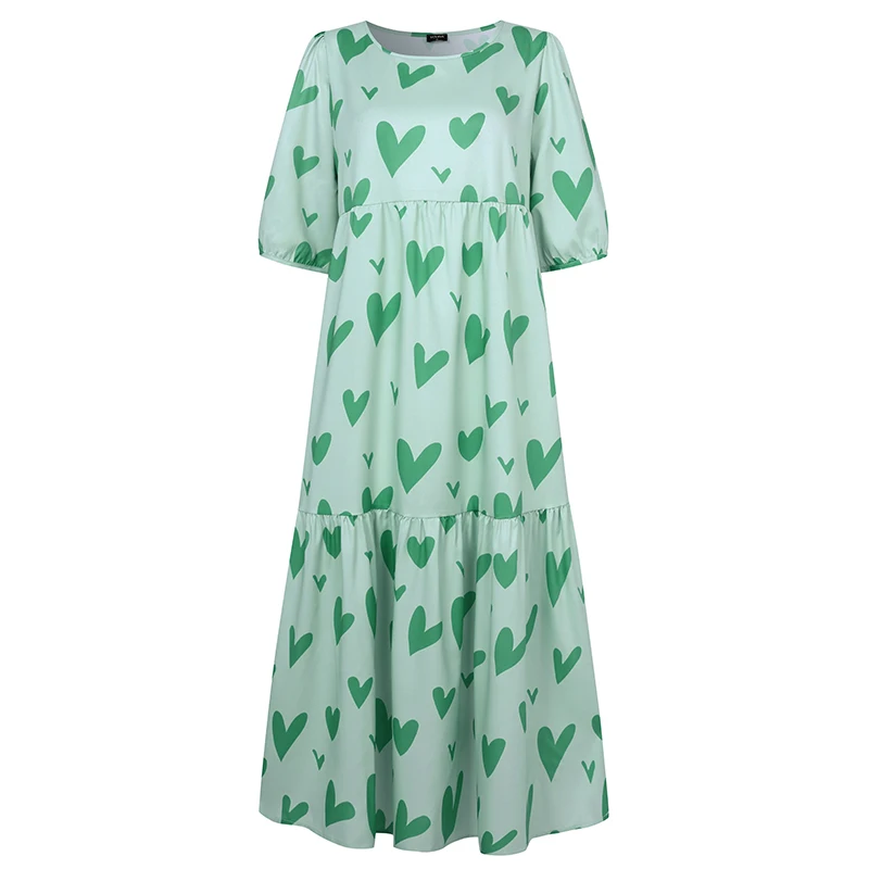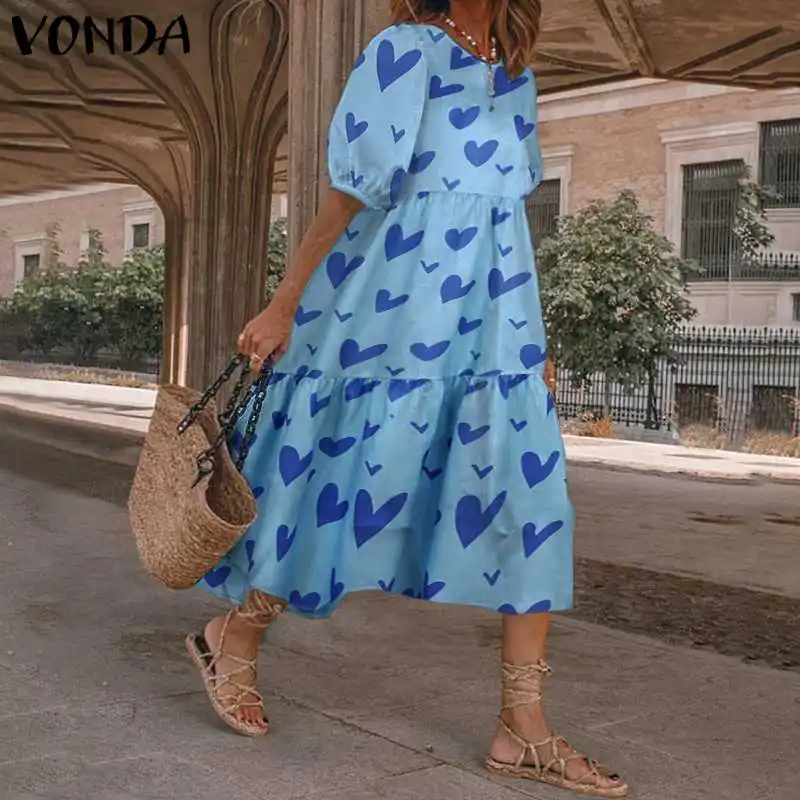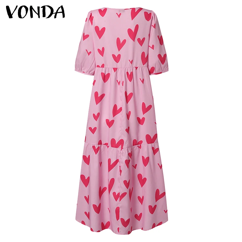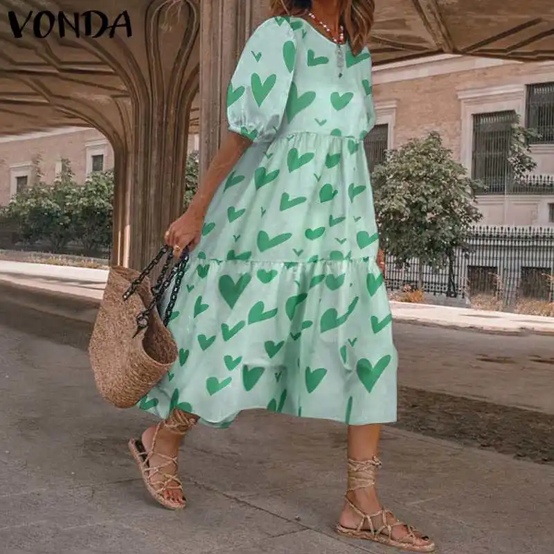 Женское летнее платье VONDA 2022, богемный сарафан с коротким пышным рукавом, вечерние платья, Элегантное Длинное Платье с принтом в виде сердца, женское платье