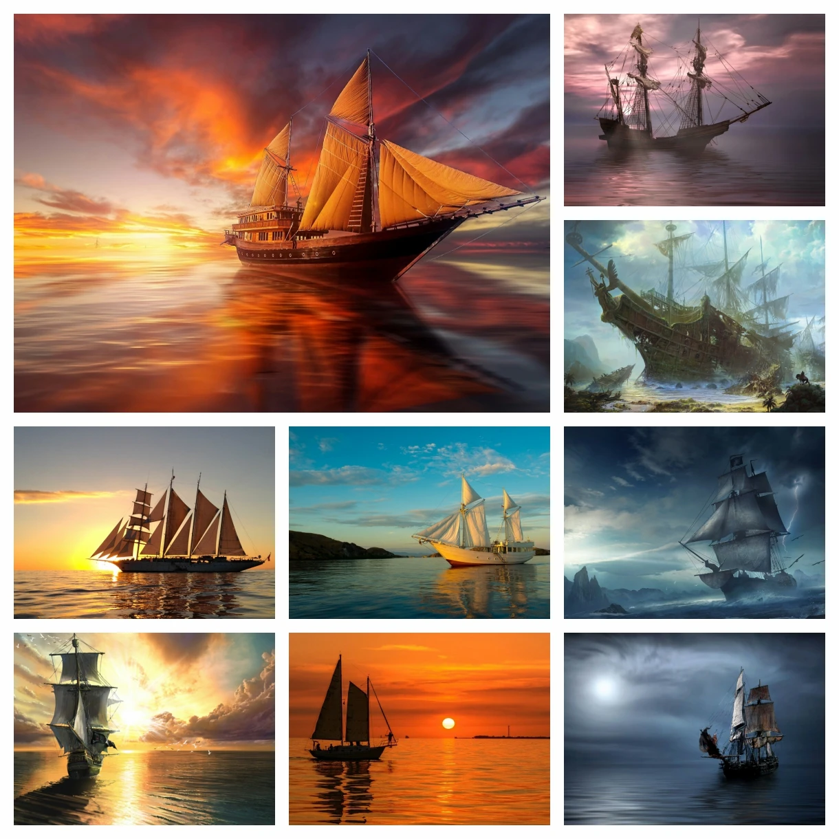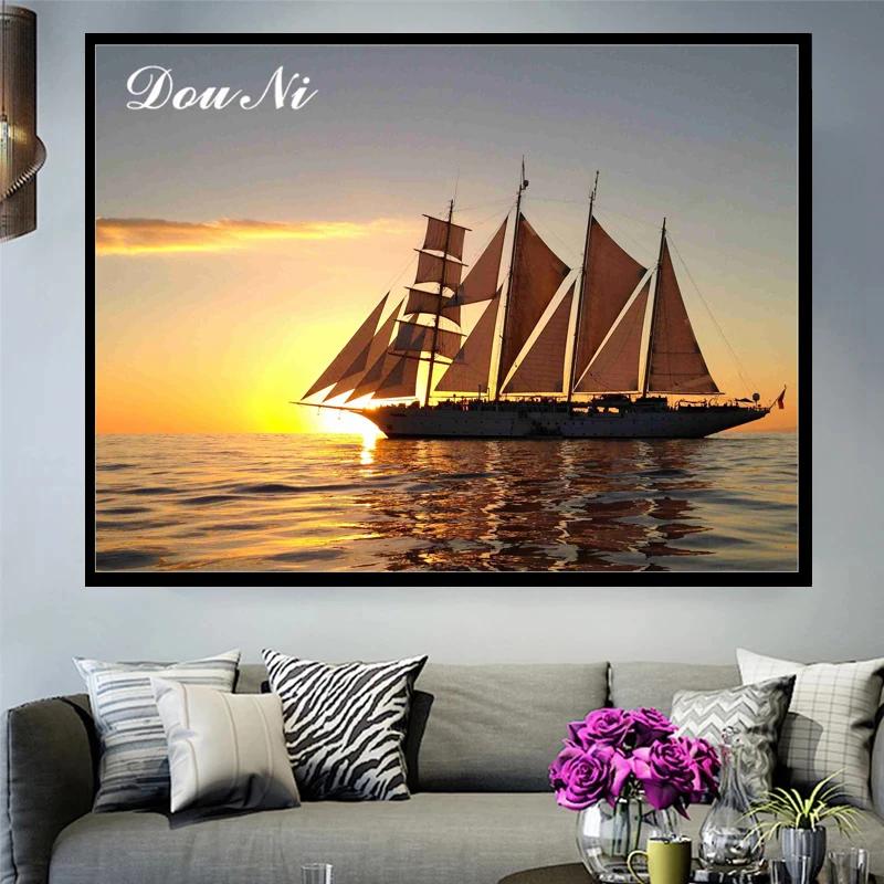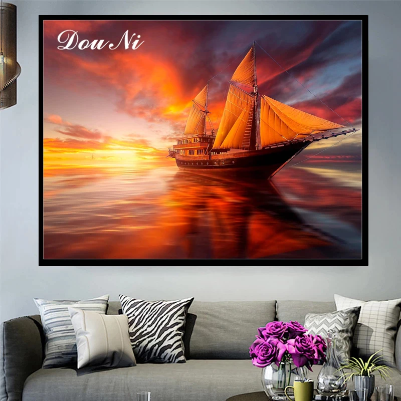Набор для вышивки крестиком 5D сделай сам, мозаика из бусин с бриллиантами в виде лодки, бриллиантовое изображение для гостиной, декор ручной работы
