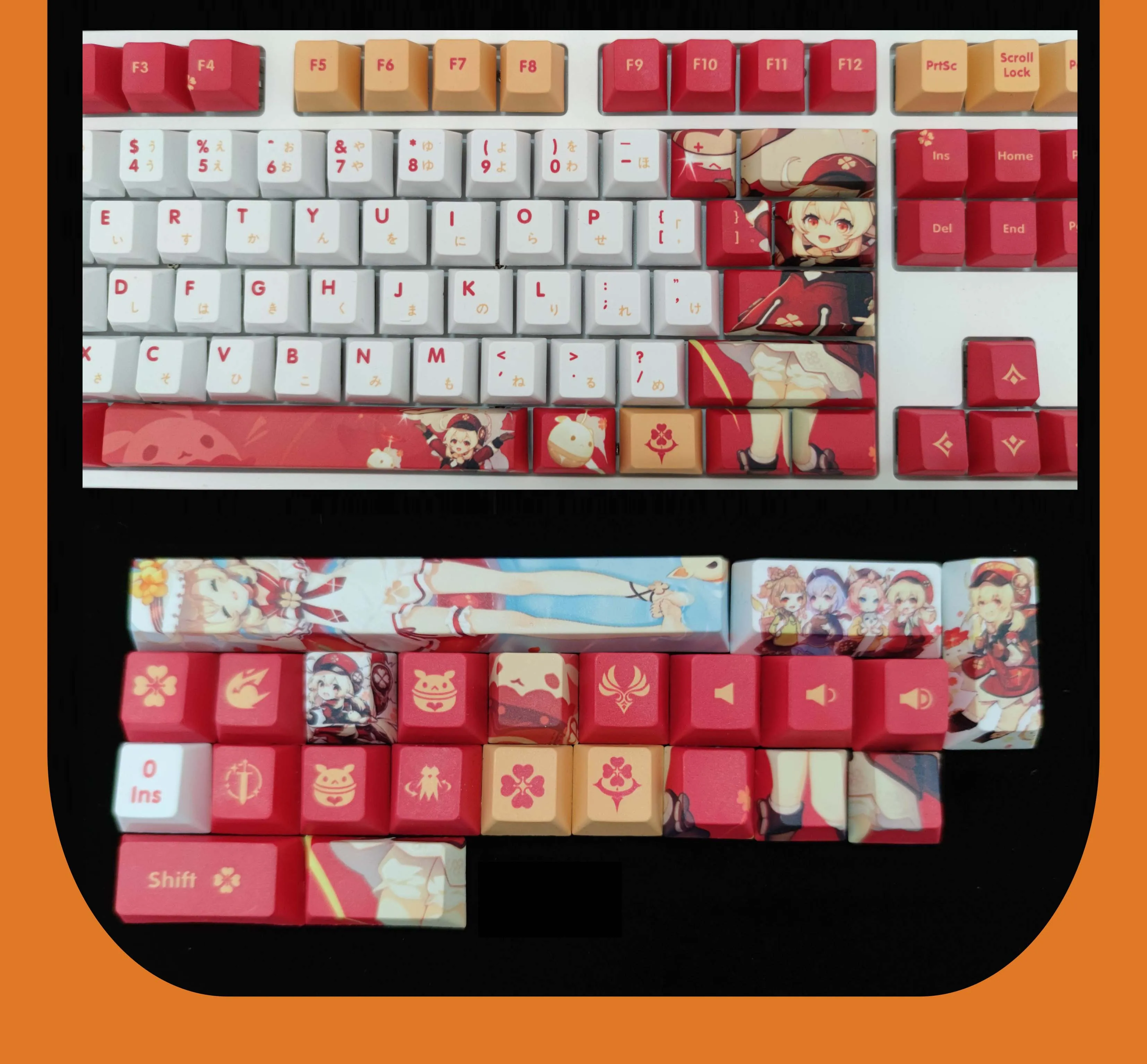 Колпачки для клавиатуры Beauty Klee, механическая декоративная клавиатура, колпачки для клавиш Genshin Impact, 128 клавиш, аниме колпачок для клавиш PBT, аксессуары для косплея