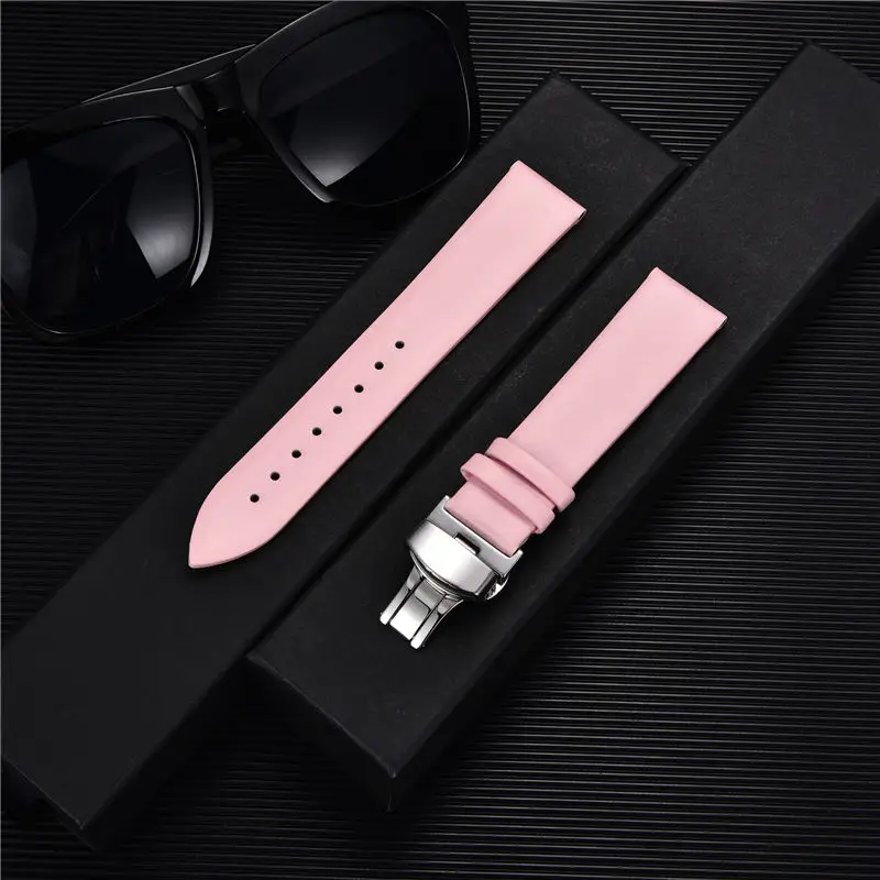 Ремешок кожаный для наручных часов, автоматический браслет с застежкой-бабочкой, 8 цветов, аксессуары для часов, 16 мм 18 мм 20 мм 22 мм