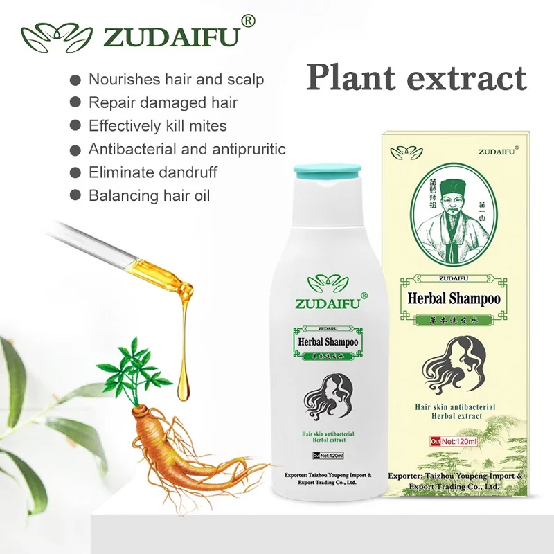Шампунь Zudaifu против перхоти, зуда, шелушильной кожи головы, псориаза и себорреический дерматит экзема, травяной шампунь 120 мл