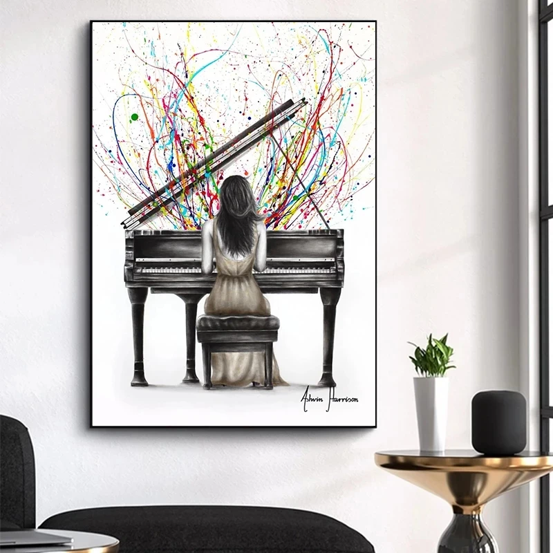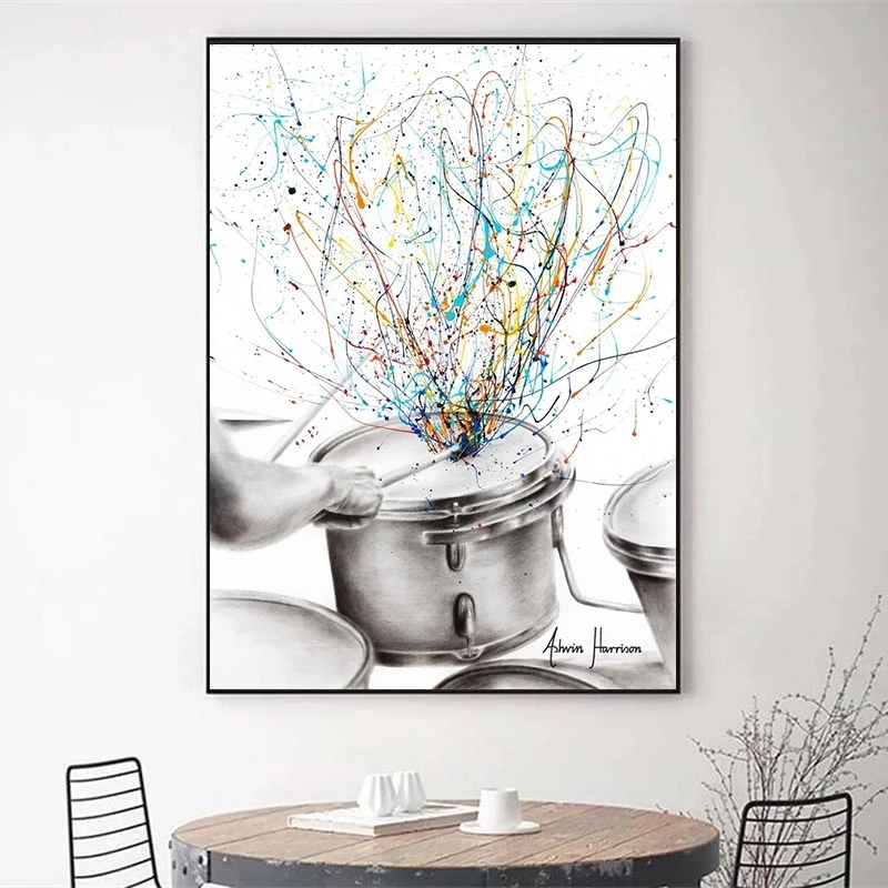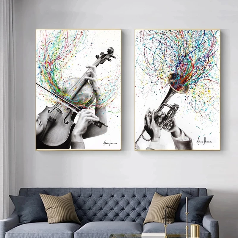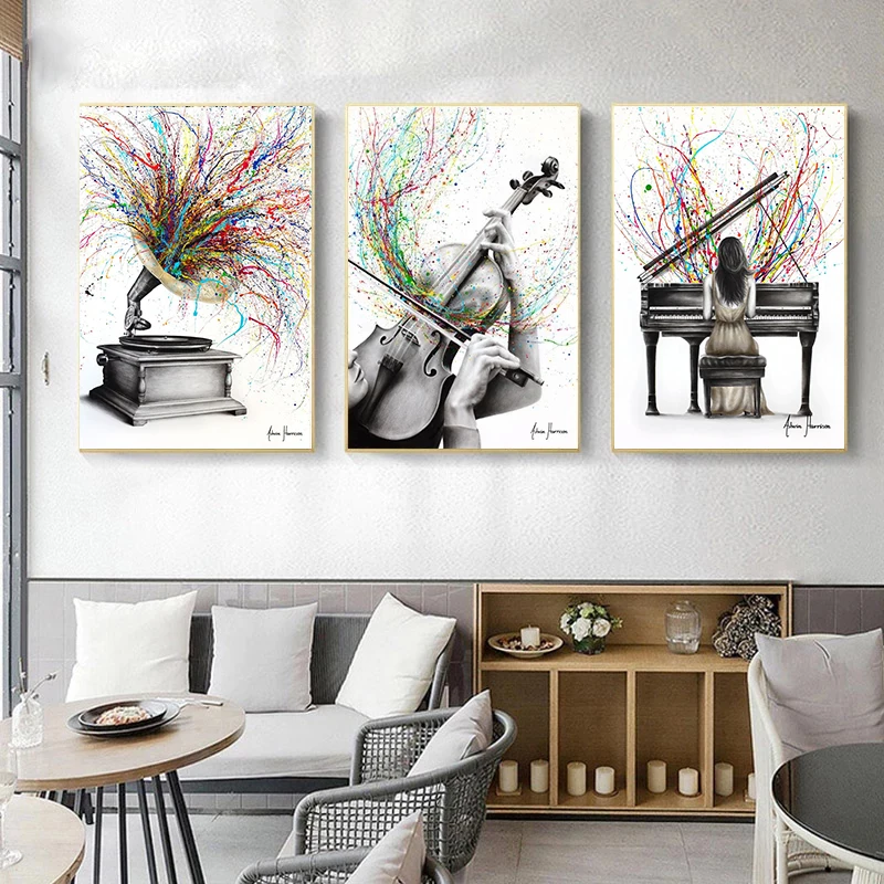 Абстрактная красочная Картина на холсте со звуком, настенное искусство, картина для музыкальных инструментов, домашний декор, модульный постер в скандинавском стиле для гостиной