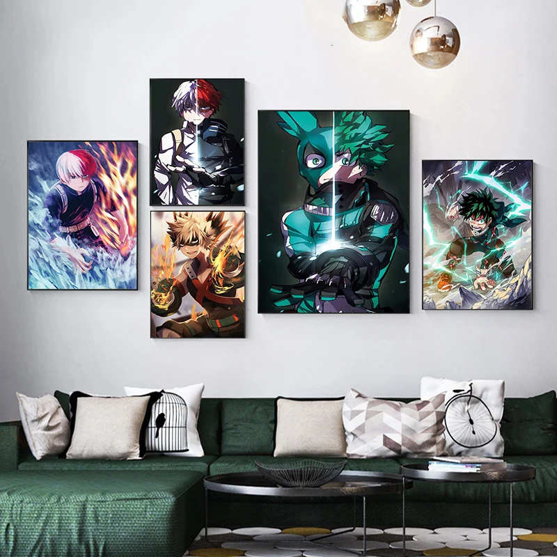 Японское аниме Моя геройская Академия, холст, плакат, Настенная картина, холст, живопись, гостиная, спальня, домашний декор, картина без рамки