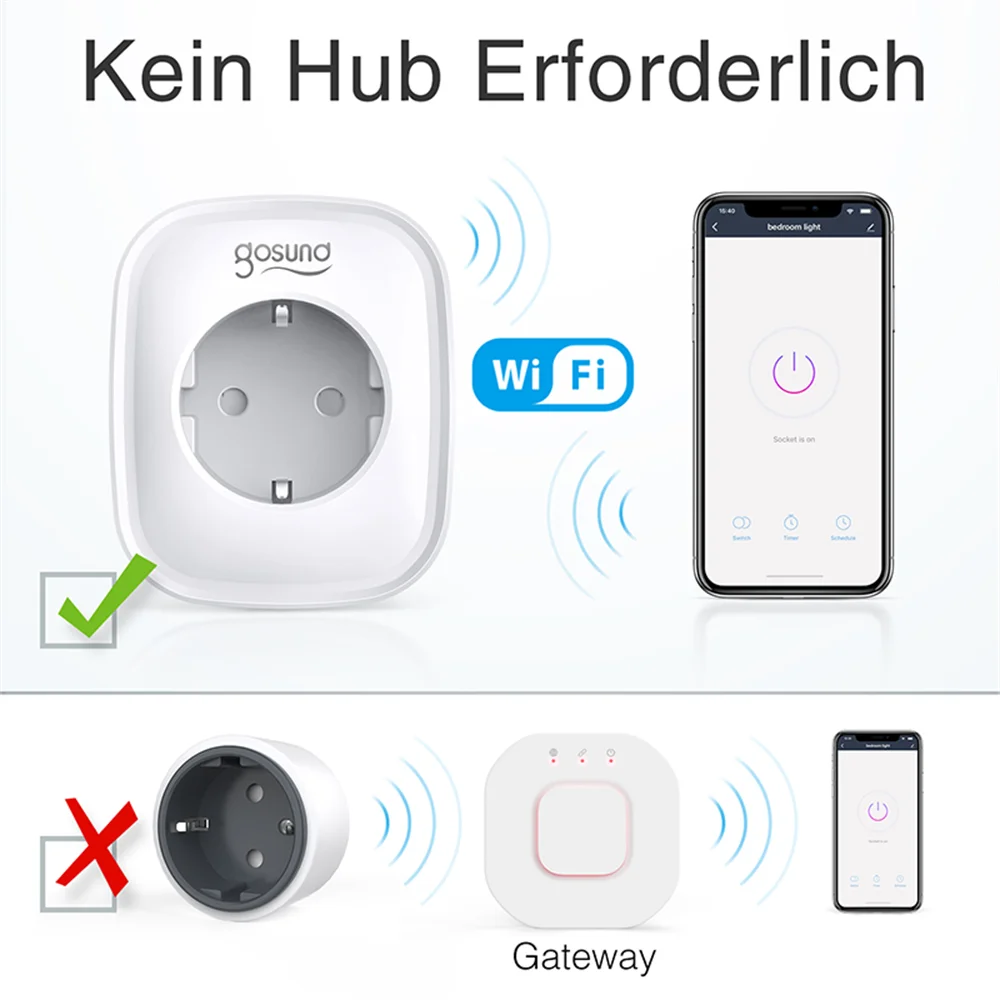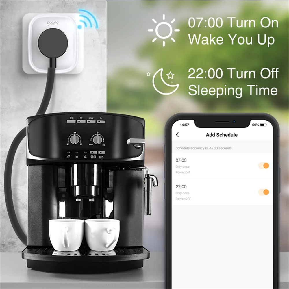 【Гибкая функция планирования и таймера 】 приложение Smart Life или бесплатное приложение Gosund позволяют контролировать все ваши электрические устройства по желанию, так что вы всегда имеете полный контроль над ними и избегайте ненужного времени работы в режиме ожидания с помощью штепсельные вилки для умного дома с таймером.