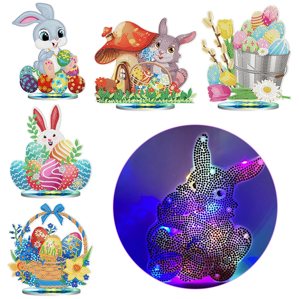 Пасхальный кролик яйцо хрустальный светильник DIY алмазная живопись LED Настольная лампа Стразы мозаика светящийся кролик украшение