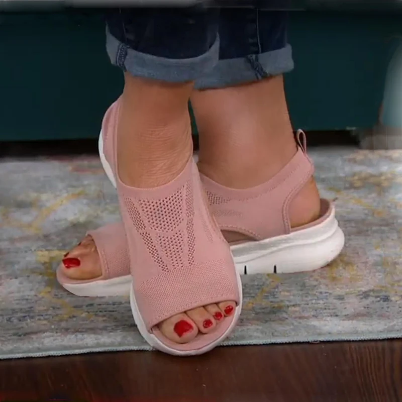 Сандалии женские сетчатые на танкетке, повседневная однотонная обувь на платформе, без застежек, мягкая обувь на толстой подошве