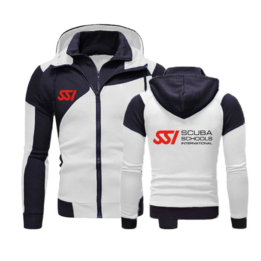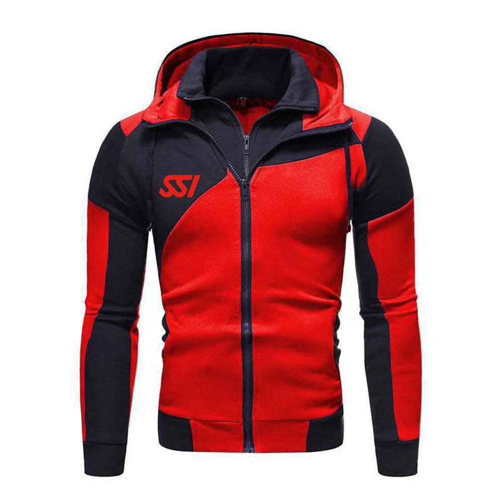 Толстовка мужская с капюшоном и принтом, модная двухслойная кофта с цветным блоком для подводного плавания и дайвинга, повседневная спортивная одежда, кардиган на молнии, на осень