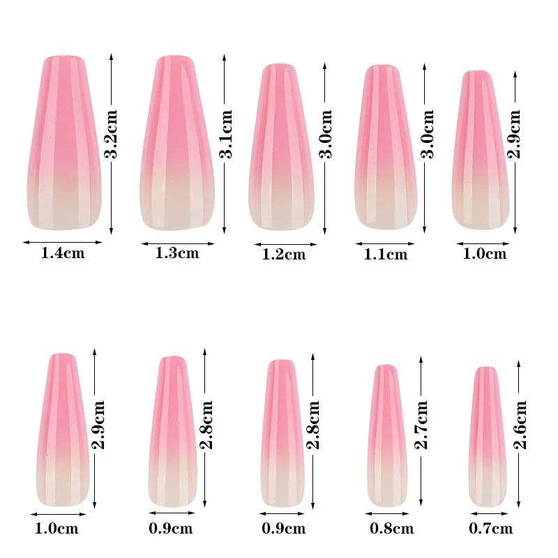 Характеристика: 1.100% Абсолютно Новый. 2. Для профессионального наращивания ногтей. 3. Идеальный выбор для вашей моды ногтей. 4. Простота в использовании, точное, идеальное украшение и долговечность. 5. Подходит для использования с гелем, акрилом или стекловолокном. 6. Различные размеры на ваш выбор, подходят для большинства людей. 7. Можно добавить украшения для ногтей на ногти и создать свой собственный стиль и узор. 8. Для профессионального салона или домашнего использования. Как использовать: 1. Отожмите стороны и область кутикулы для точной посадки с помощью маникюрной палочки; 2. Очистите ногти от любого польского масла с помощью ацетона для удаления лака; 3. Выберите правильный размер ногтей для каждого пальца; 4. Нанесите клей на ногти; 5. Нанесите тонкий слой клея на натуральные ногти; 6. Начиная с кутикулы, нажмите и удерживайте в течение 5 секунд; 7. Напиши и формируем новые ногти при необходимости. Удалите советы: Положите ногти в теплую воду в течение 2 минут, и стикер для ногтей может быть удален легче. Не удаляйте его резко, и это может нанести вред поверхности ногтей. Примечание: Ввиду того, что Замеры производились вручную, замеры сделаны вручную, поэтому возможны 0,05 см считается допустимой. Между тем, цвет может немного отличаться от цвета экрана с разным разрешением. Надеюсь, вы не против. Если размер ваших ногтей больше, чем у других, вы можете выбрать Длинные накладные ногти в нашем магазине.