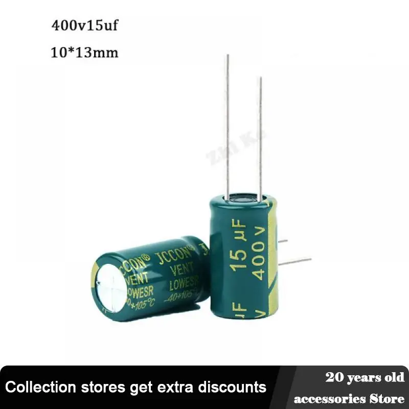 12 шт., алюминиевый электролитический конденсатор с низким ЭПС, 400 В, 15 мкФ, 10*13 мм, 15 мкФ, 400 В, электрические конденсаторы, высокая частота 20%