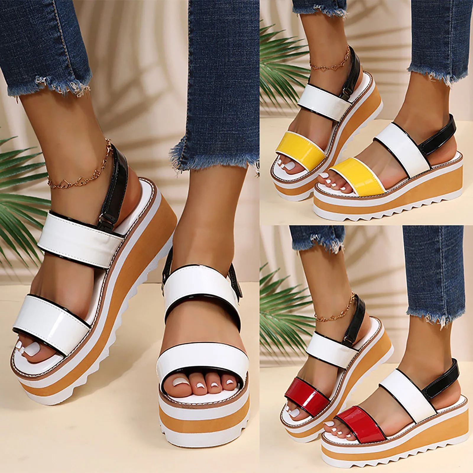 Шлепанцы женские на танкетке, уличные сандалии с открытым носком, ц...