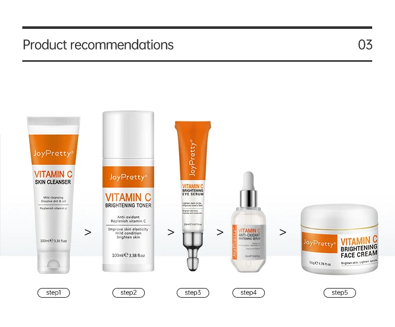 ②Тонер для осветления витамина ССодержит витамин с высокой чистоты, извлекаемый из кожуры цитрусовых, витамин С Осветляющий тонер эффективно антиоксидант, Осветляющий кожу и даже Осветляющий акне пятна. Компоненты растительного экстракта очень увлажняющие и влажные, повышающие сияние кожи. Он также может защитить вашу кожу от тусклости и сухости после воздействия солнца