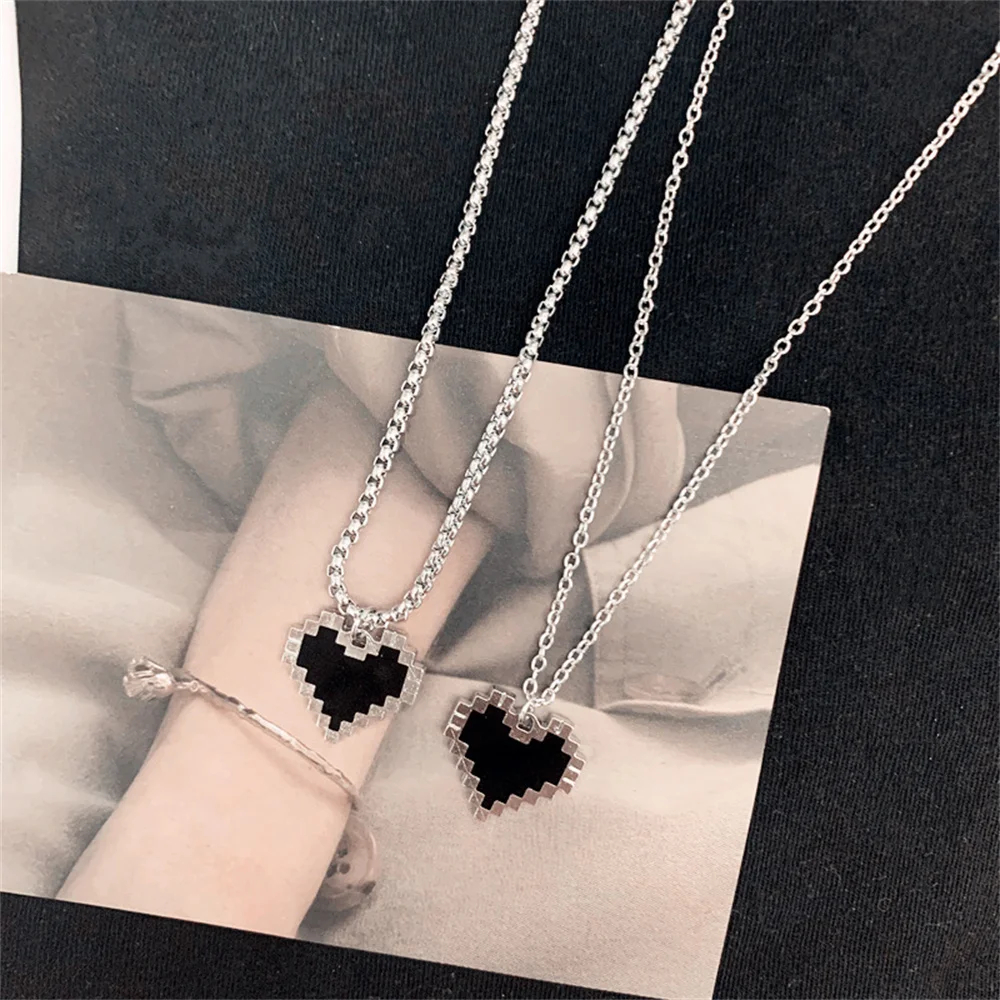 Черная мозаика любовь пиксель персик сердце Двухслойное ожерелье дл...
