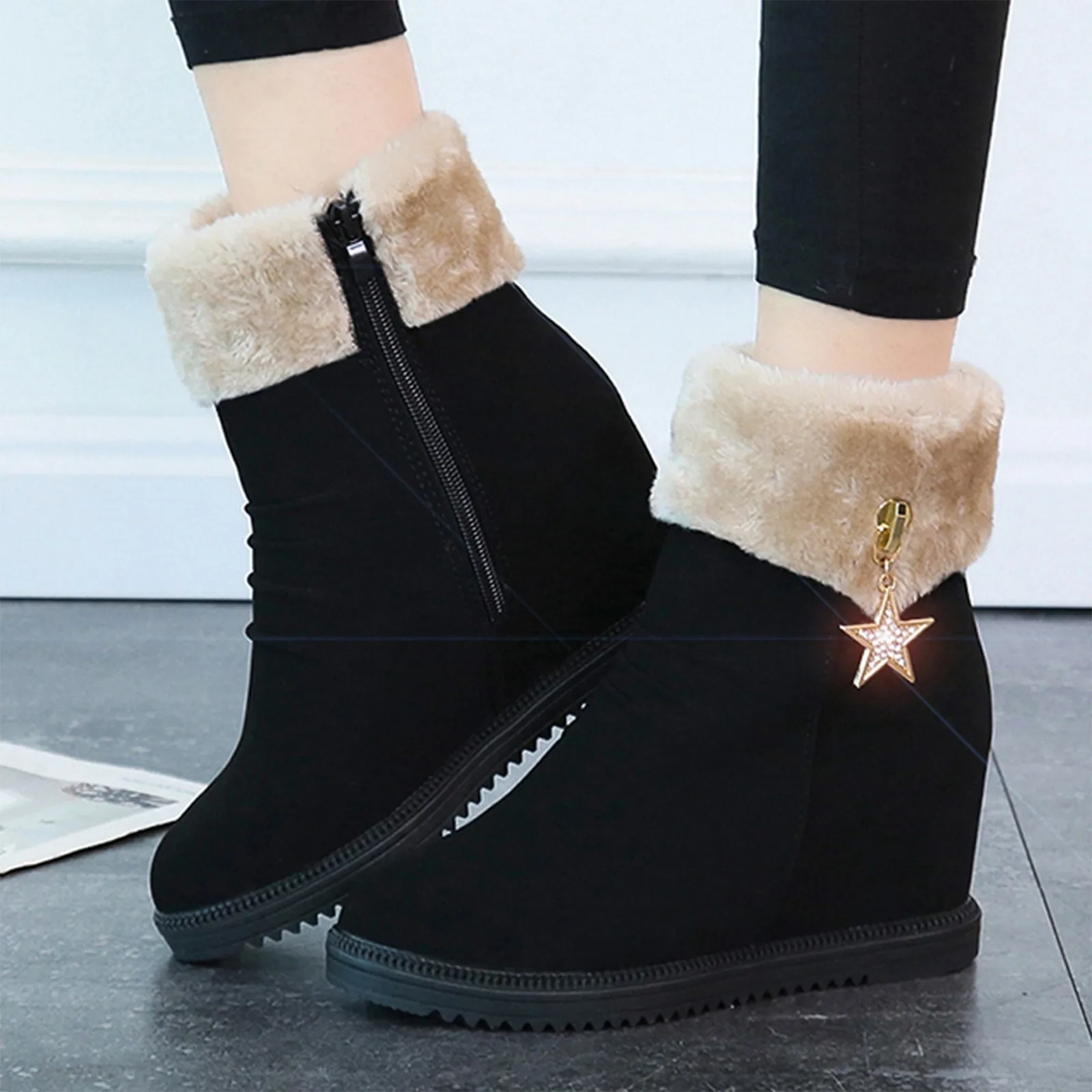 Ботильоны для женщин, зимняя повседневная женская обувь для снега, замшевые зимние ботинки на молнии, женские плюшевые меховые ботинки, женские ботинки на платформе
