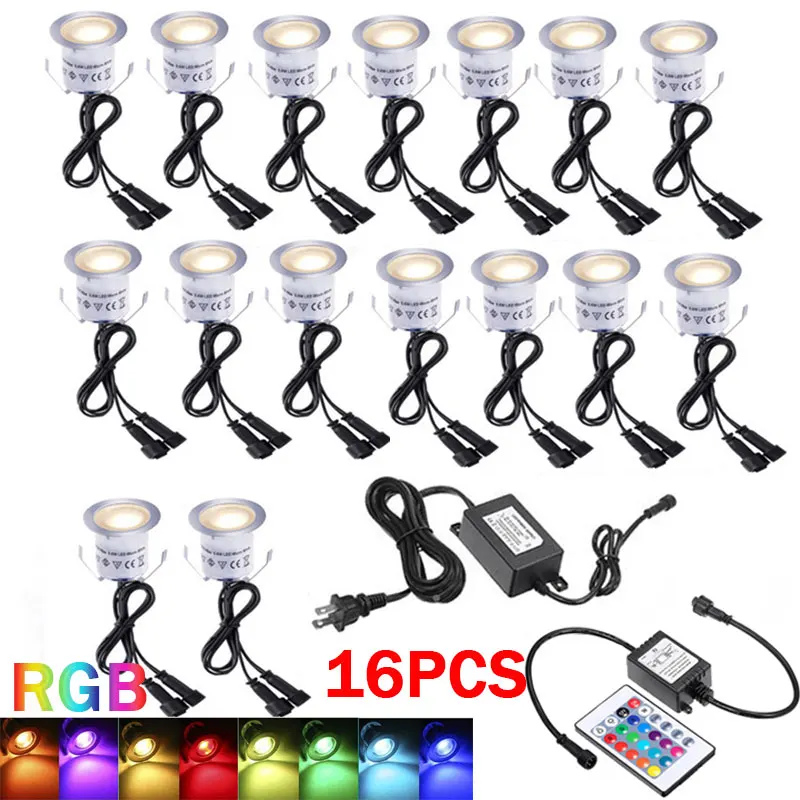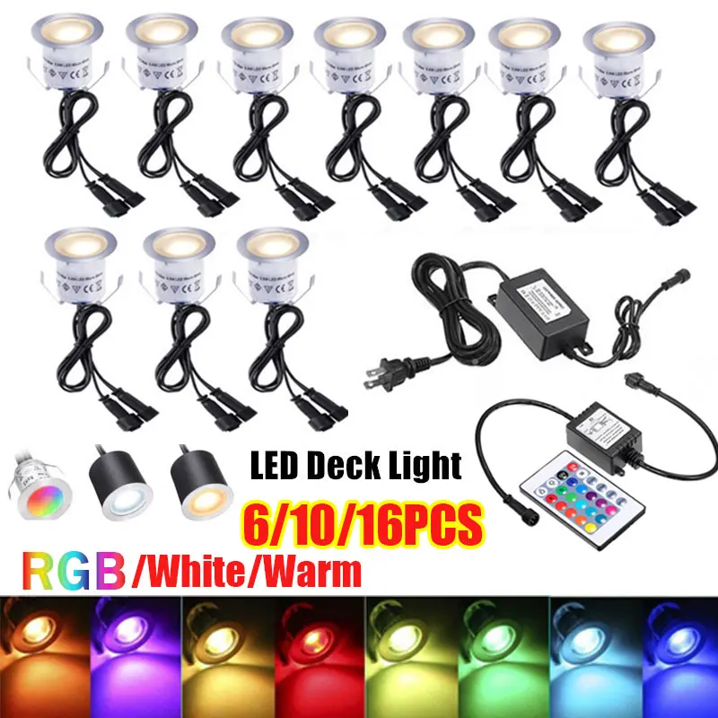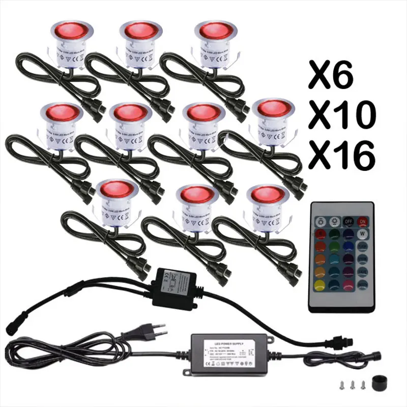10/16 шт./комплект светодиодный палуба светильник IP67 RGB подземный светильник дистанционного встраиваемые пейзажное место светильник сада Путь Шаг палубы Светильник Встраиваемые тёплого/белый светильник ЕС