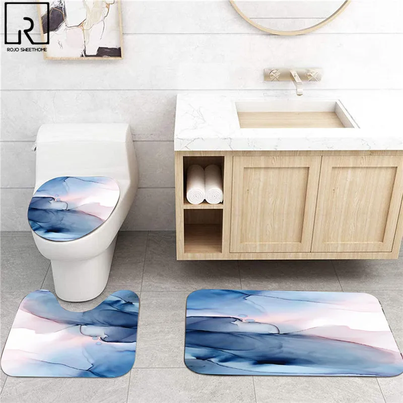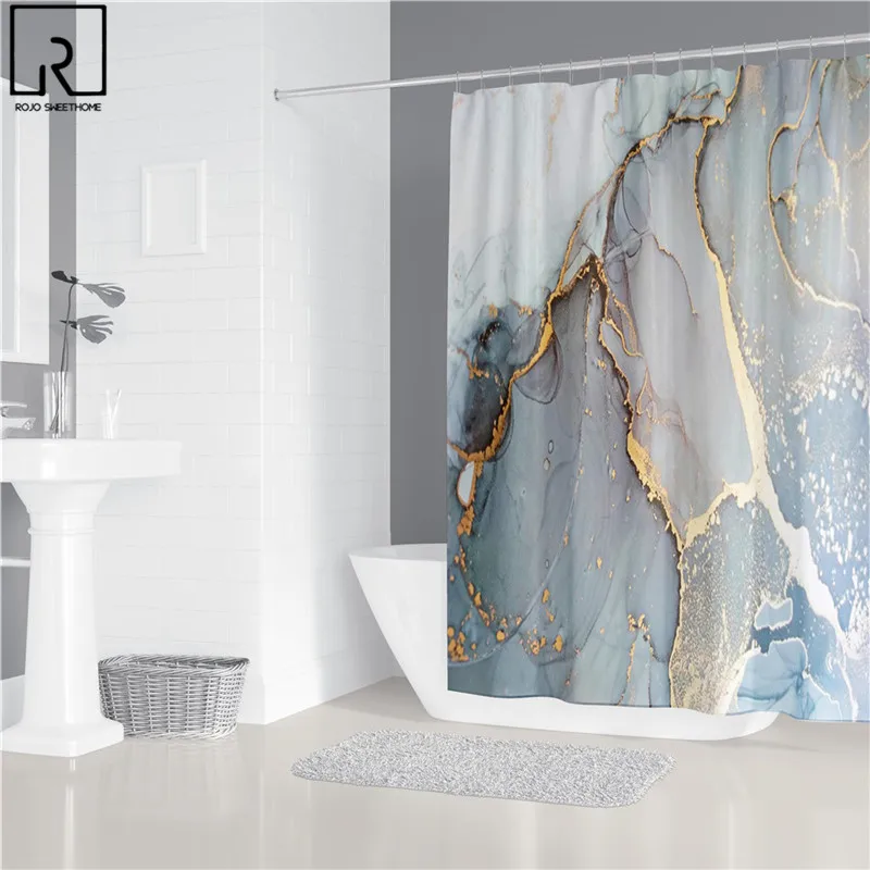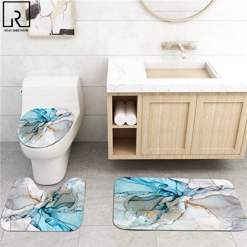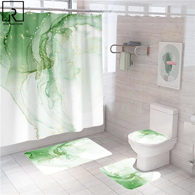Зеленая Золотая занавеска для ванной комнаты, Мраморная занавеска для экрана ванной комнаты, декоративная Водонепроницаемая перегородка, Противоскользящий коврик, набор, крышка для туалета