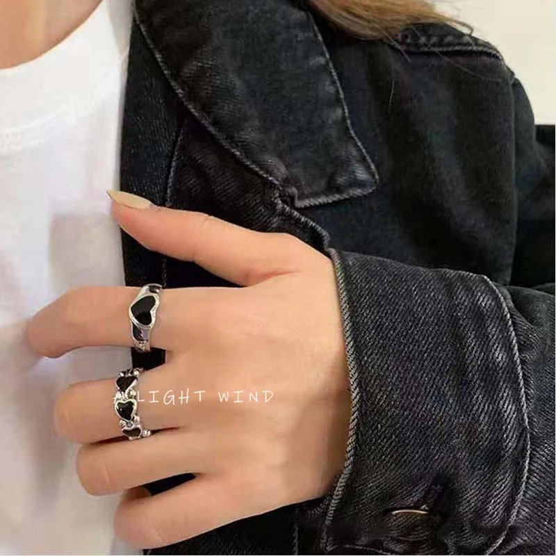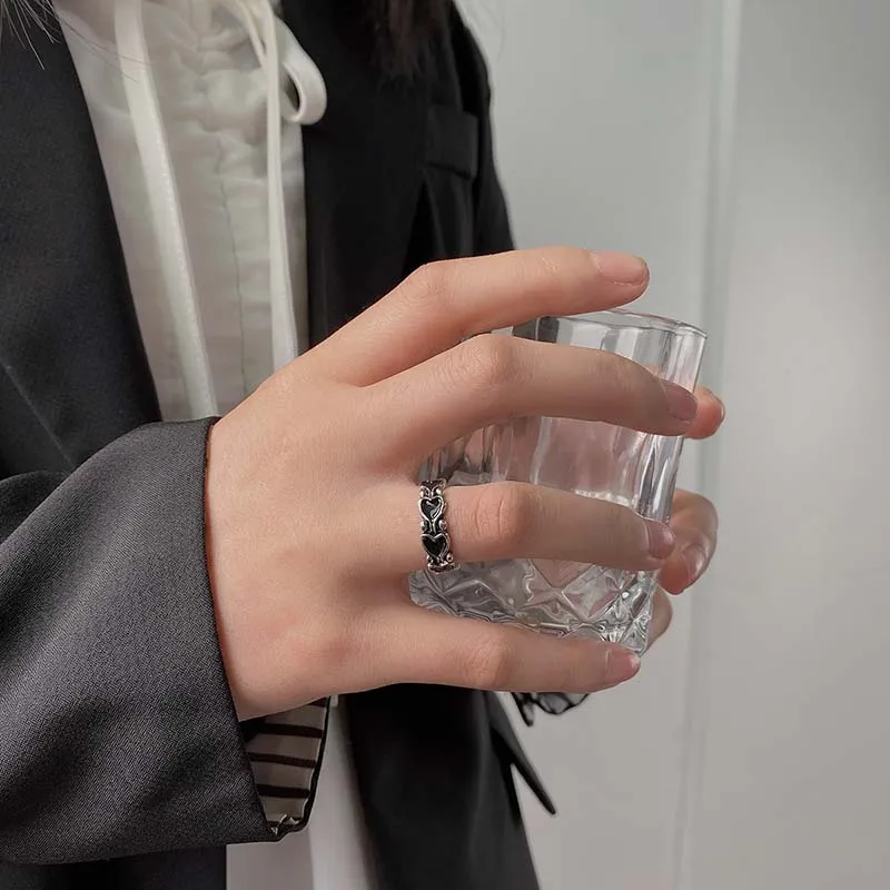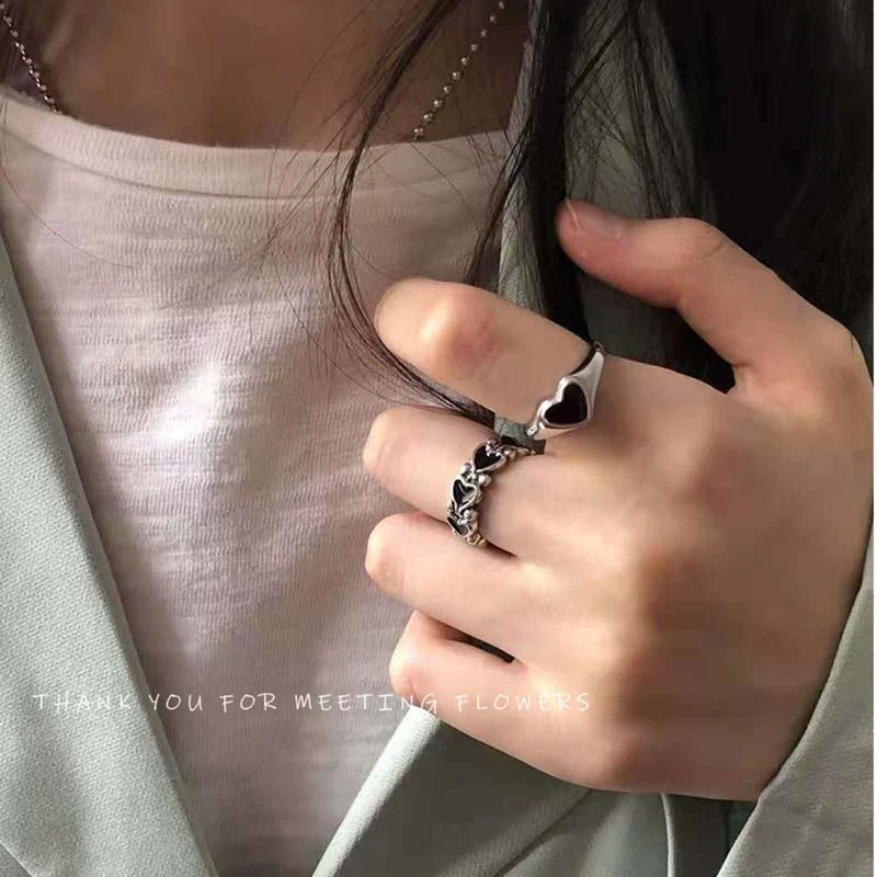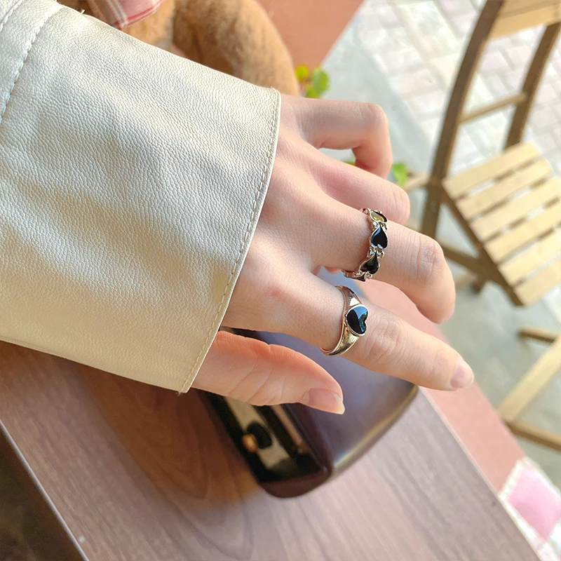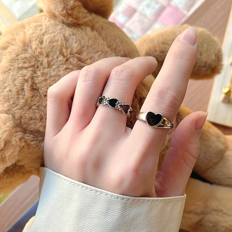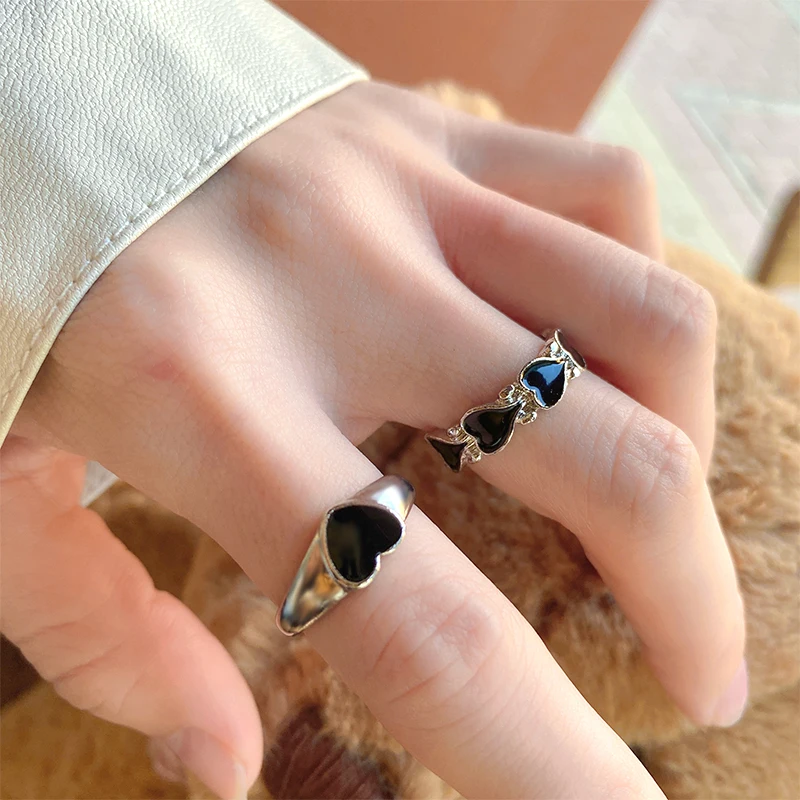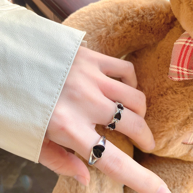 Кольца в форме сердца для женщин, ювелирные изделия в стиле панк и хип-хоп для девушек, корейские винтажные кольца в стиле Харадзюку высокого качества, модные женские кольца 2022