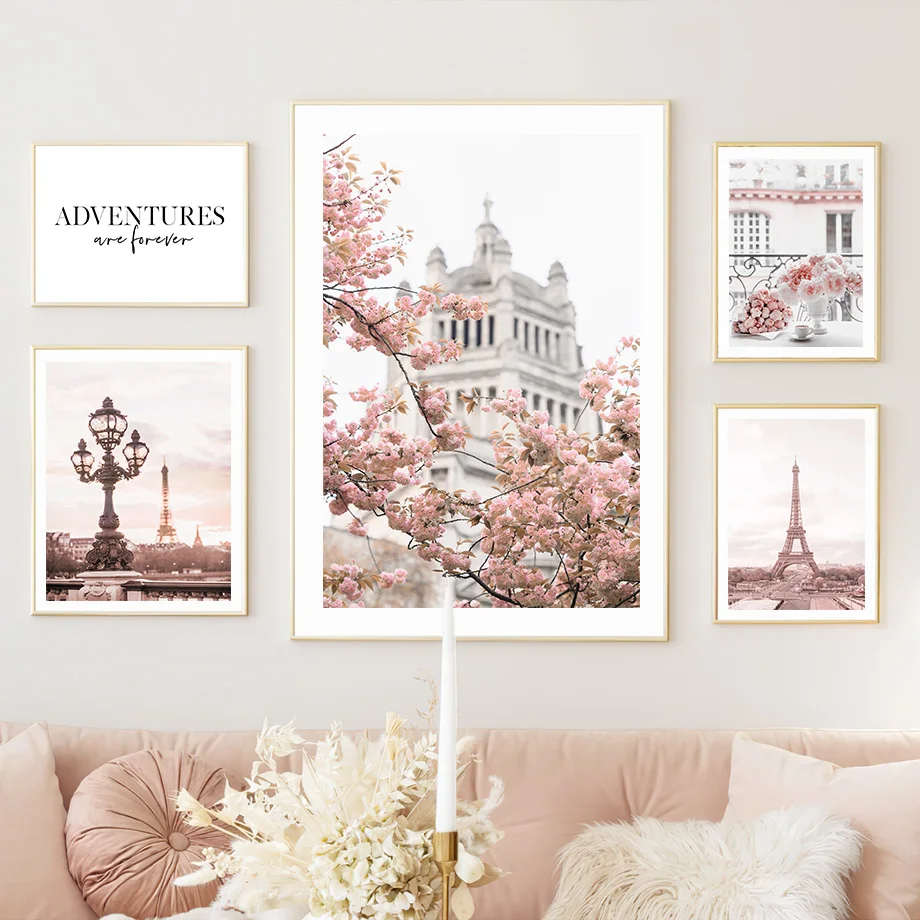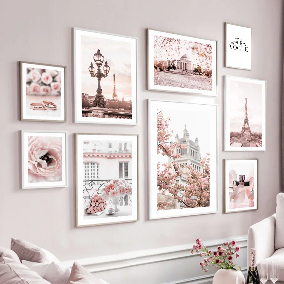 Розовая Роза Пион Парижская башня кольцо с духами настенная Картина на холсте скандинавские постеры и принты настенные картины для декора гостиной