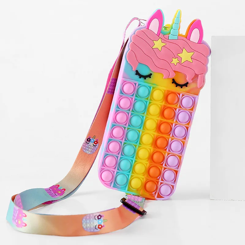 Радужный Кошелек для монет, сумка для телефона, кросс-боди, Поппер, Детский мягкий силиконовый кошелек с Push-Pop пузырьками, единорогом, с ремешком-лямкой