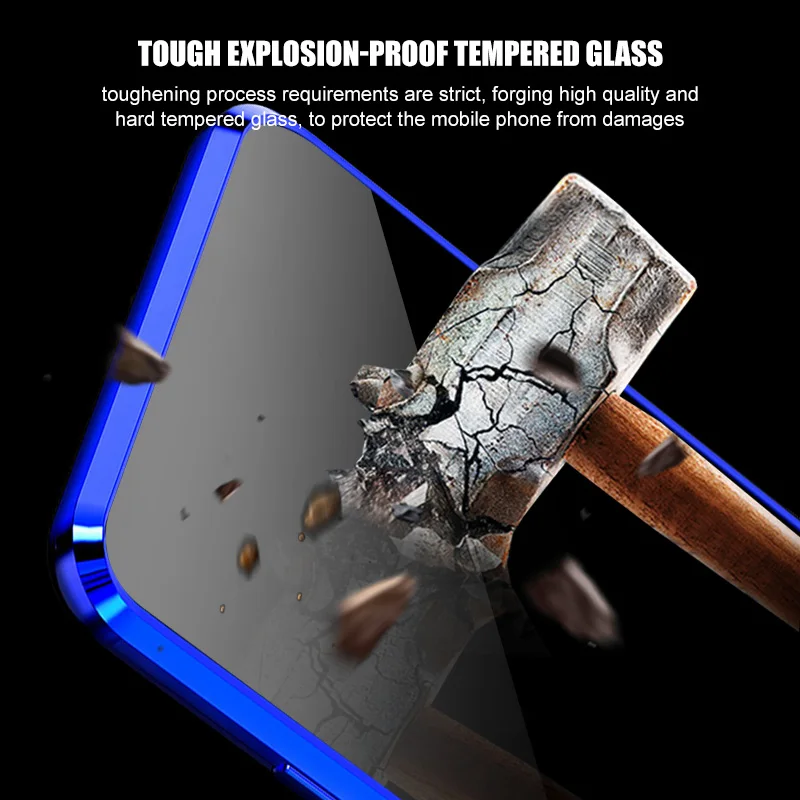 Features 2Magnetic Adsorption Metal Bumper Tempered Glass Back Phone Case