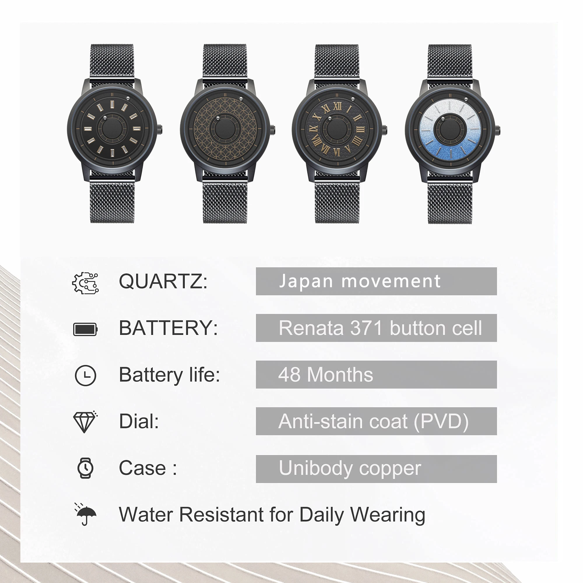 EutourМы специализируемся на магнитных часах и делаем их достижимыми для всех.Мы столкнулись с некоторыми проблемами и, благодарим вас, наконец, решили их, качество сейчас самое лучшее и лучшее в истории.Теперь мы гордимся тем, что мы привели наши новые проекты, которые вам понравятся на рынке.Eutour, эксперт по магнитным часам.