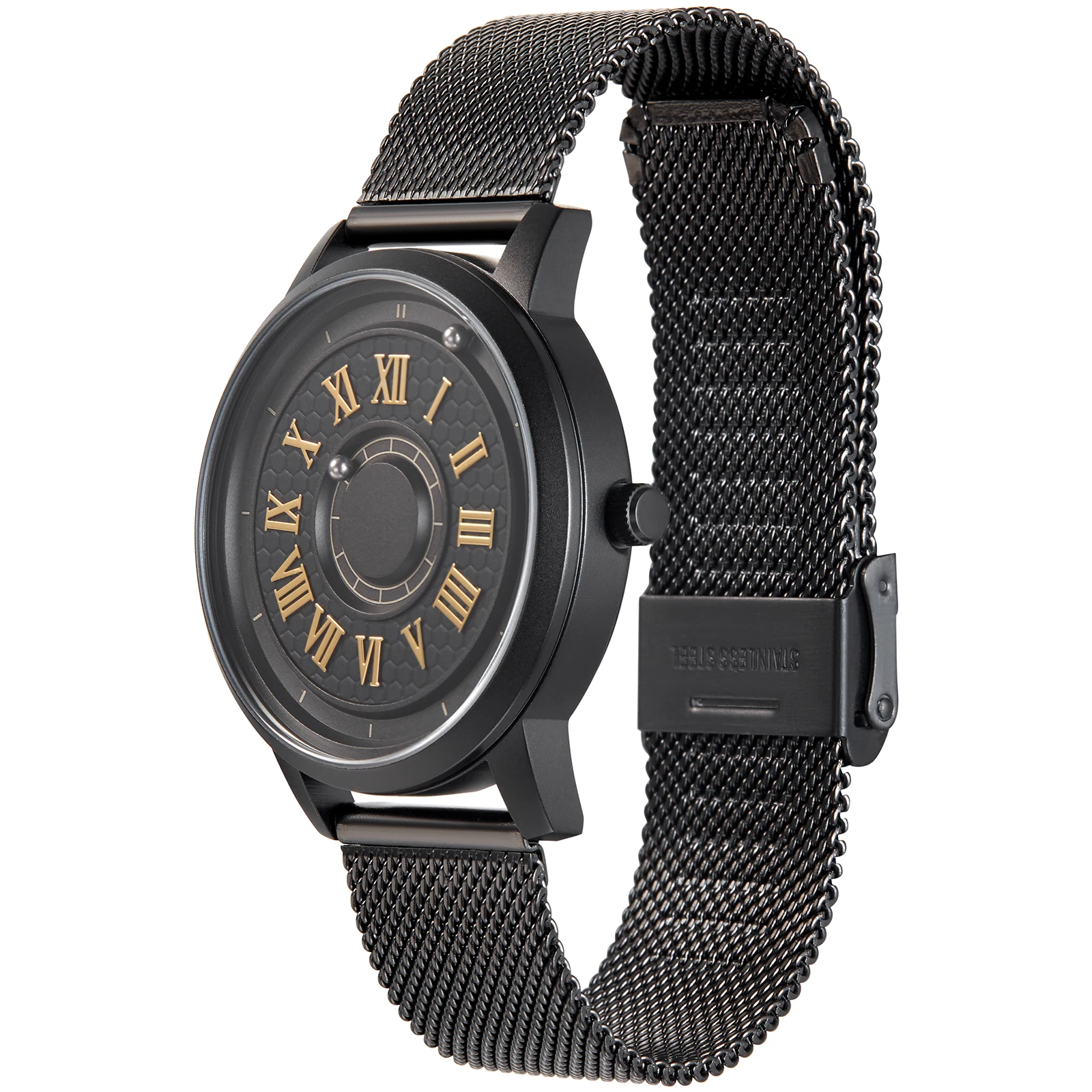 Часы, которые выглядят и работают в отличие от других. Посмотрите и почувствуйте время движения, как никогда ранее, благодаря нашей революционной магнитной технологии. Уникальный, стильный и роскошный. Все в одном!Устали от того же старого скучного дизайна часов? Хуже всего, все часы работают одинаково. Мы Eutour решили сорвать всю индустрию, создав эффектные часы, которые поворачивают головы везде, куда бы вы ни отправились. Наш смелый дизайн позволяет людям говорить время с касанием и зрением.Характеристики:☑Ремешок: нержавеющая сталь-нейлон-кожа☑Циферблат: черный☑Механизм: кварцевый☑Водонепроницаемость: 3 бар☑Корпус: витрина☑Лицевая сторона: диаметр 40 мм☑Толщина: 10 мм (от верха до низа)☑Ремешок: ширина 20 ммКак это работает?-В каждом часе есть два шариковых подшипника, которые используют намагниченную технологию для путешествий по лицу часов.-Один Трек показан на внешнем краю часов для часовой стрелки, а другой расположен во внутреннем кромке для минутной стрелки.Примечание: наши часы имеют фирменный дизайн и разработаны с удивительным мастерством. Каждое изделие поставляется с 6-месячной гарантией. Мы отправляем в любую страну мира и можем отправить часы прямо к вашей двери!