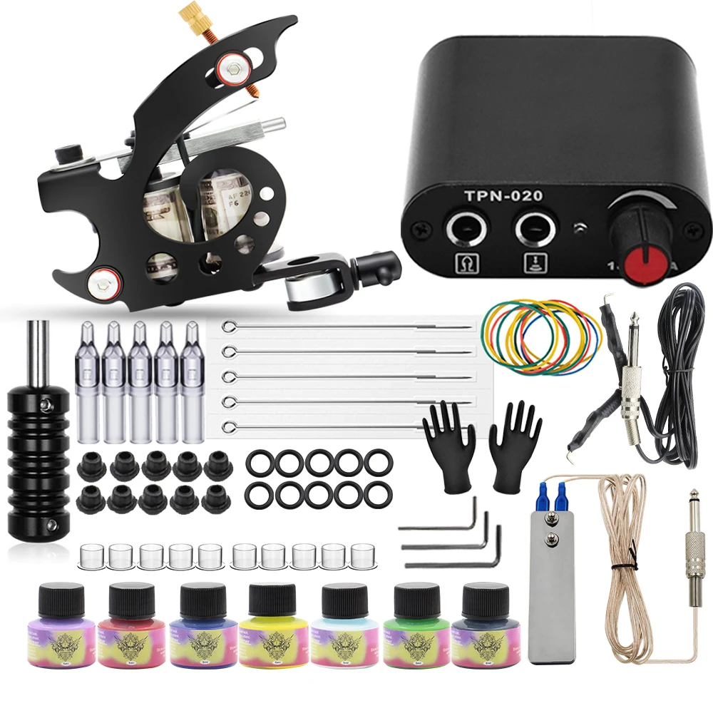 Набор для тату, полный набор для тату, черный источник питания, чернила, пигмент, Иглы для татуировки, аксессуары для начинающих татуировок