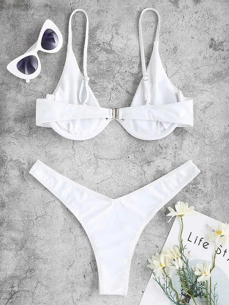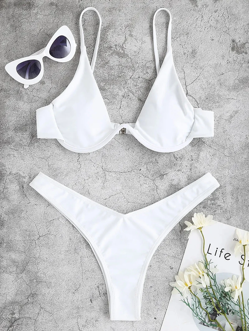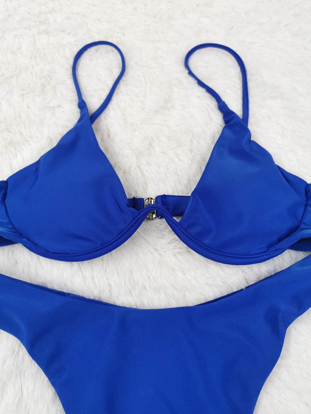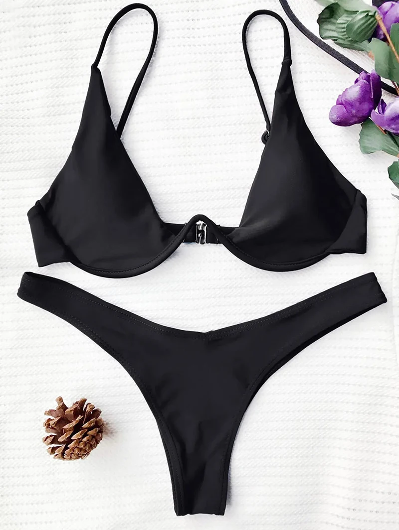 Бикини пуш-ап женское с V-образным вырезом, купальный костюм треугольной формы, пикантный комплект из двух предметов, стринги с высоким вырезом