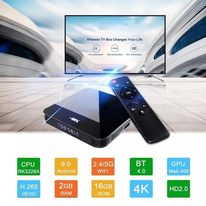 ТВ-приставка H96 Mini H8, Android 9,0, 1 + 8 ГБ2 + 16 ГБ, четырехъядерный процессор RK3228A, 4K, Wi-Fi, BT4.0, ТВ-приставка, HDMI 2,0 видео