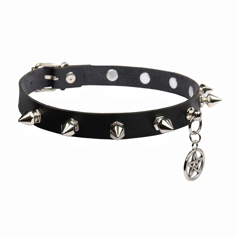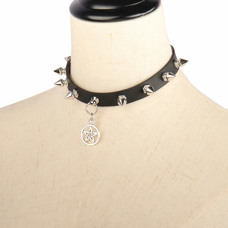 Goth пентаграмма ожерелье эмо спайк ошейник черный искусственная кожа Harajuku аксессуары в готическом стиле женщина ведьма косплей ювелирные изделия
