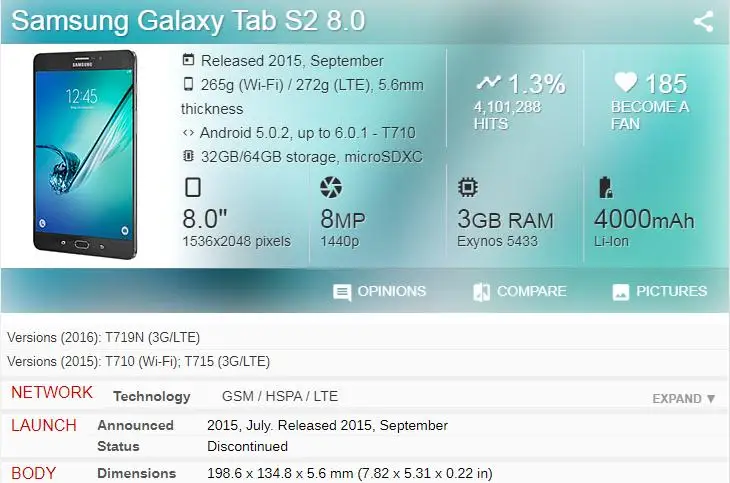 Номер моделиSamsung Galaxy Tab S2 8.0 T710 T715 T719N
