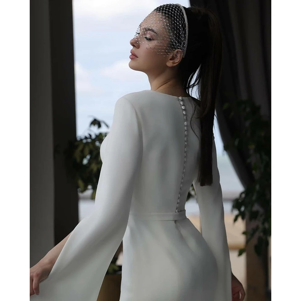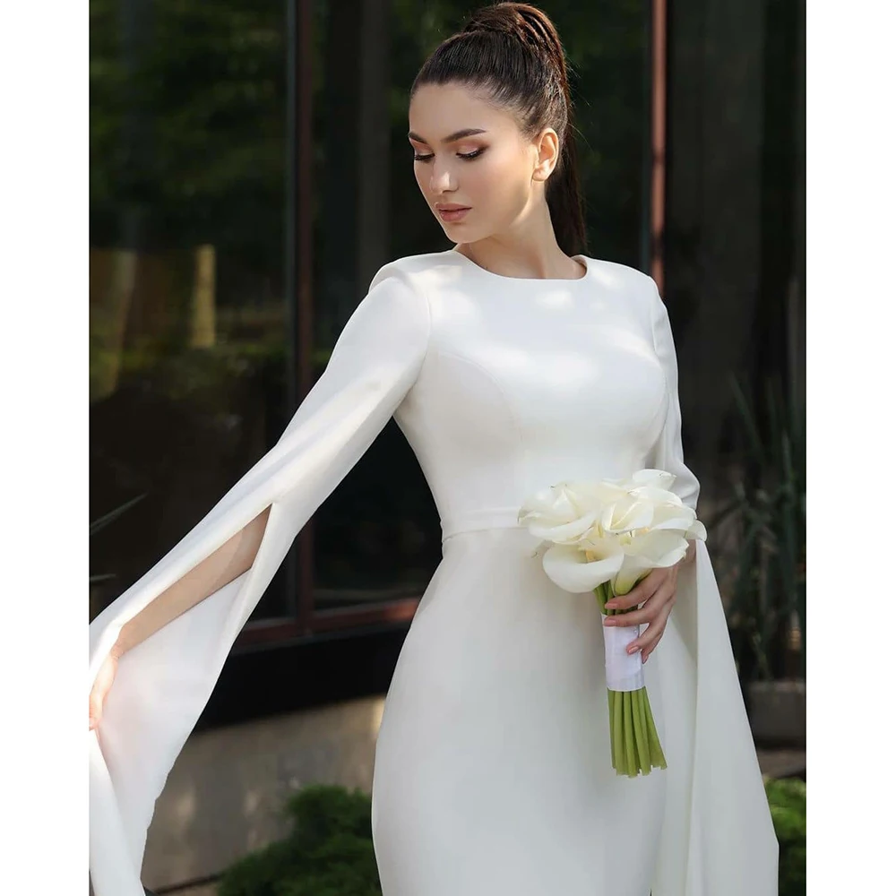 UZN элегантные атласные свадебные платья русалки с глубоким круглым вырезом с длинными рукавами Свадебные платья на пуговицах платье для невесты платья для невесты
